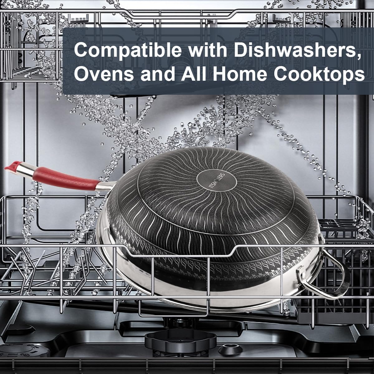 Tri-ply Stainless Steel Wok with Lid, 13.5'' PFOA Free Nonstick Stir Fry Pan, Induction Compatible, Dishwasher and Oven Safe, Scratch-resistant Surface