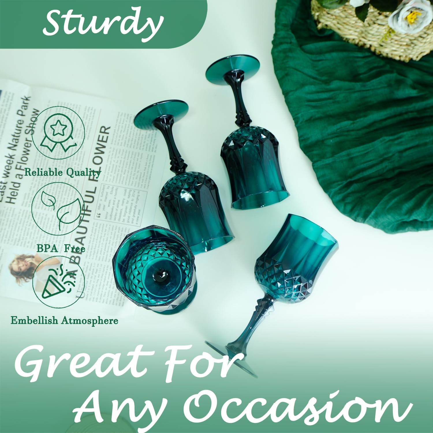 Plastic Wine Glasses,Plastic Goblets Vintage Style Cordial Drinking Glasses for Wedding Reception, Grand Event Party Supplies (24, Green)