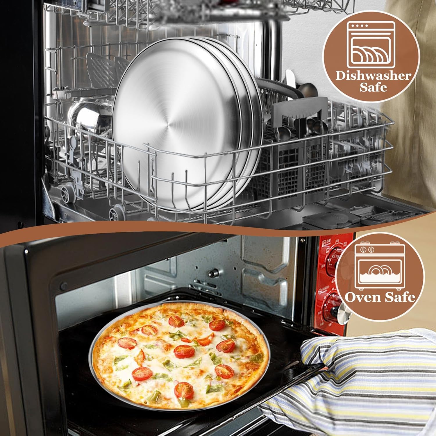 - Pure Stainless Steel: TeamFar 9 inch pizza pans are made of premium stainless steel, No any toxic or chemical coating leaching into your food, Healthy and safe for daily use, Great alternative to aluminum/ coated pans