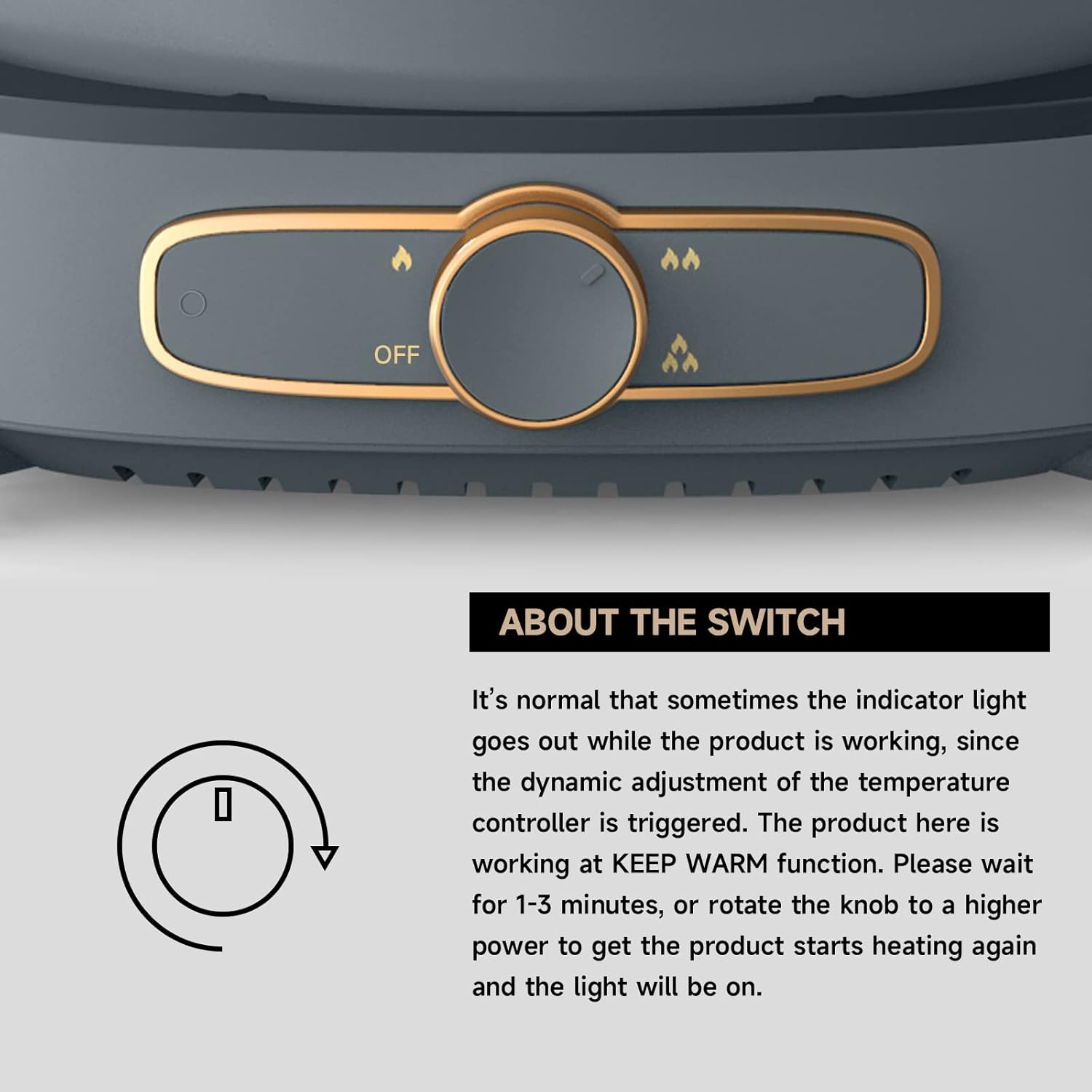 - Precision Cooking with 3 Power Settings: From Simmer to Sizzle! With 1500W power and 3 adjustable settings, this electric hot pot handles everything from delicate fondues to sizzling BBQ. The square shape provides better heat distribution for perfect searing, while dual heating tubes ensure fast, even cooking.