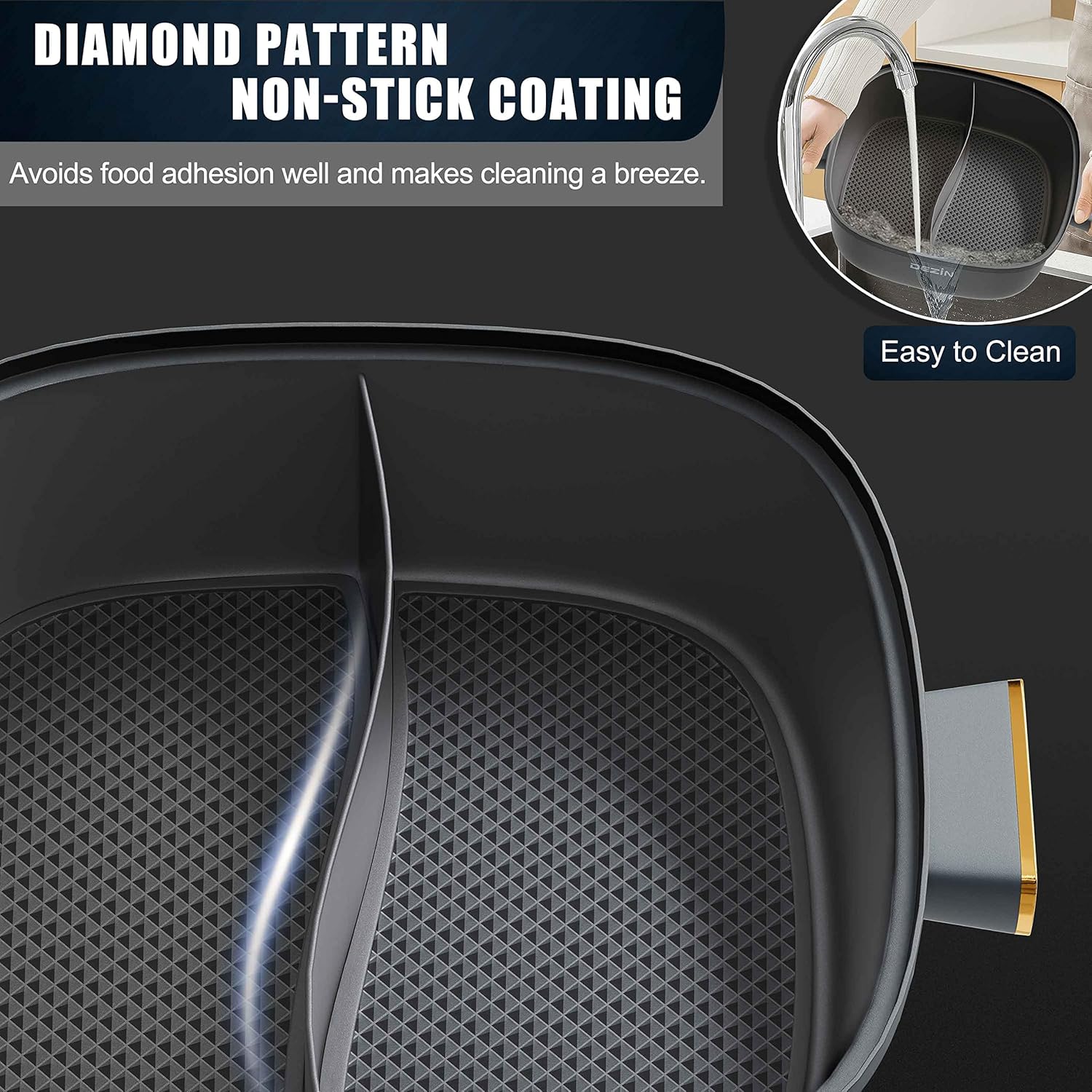 - Premium Diamond Non-Stick Coating: Our 100% food-grade diamond coating delivers superior non-stick performance, perfect for American favorites like seared steaks, cheesy omelets, and golden pancakes—nothing sticks, nothing burns. The reinforced diamond pattern enhances durability while ensuring flawless food release, whether you're stir-frying veggies or melting cheese for nachos. Plus, the square flat bottom maximizes cooking surface for better searing and flipping.