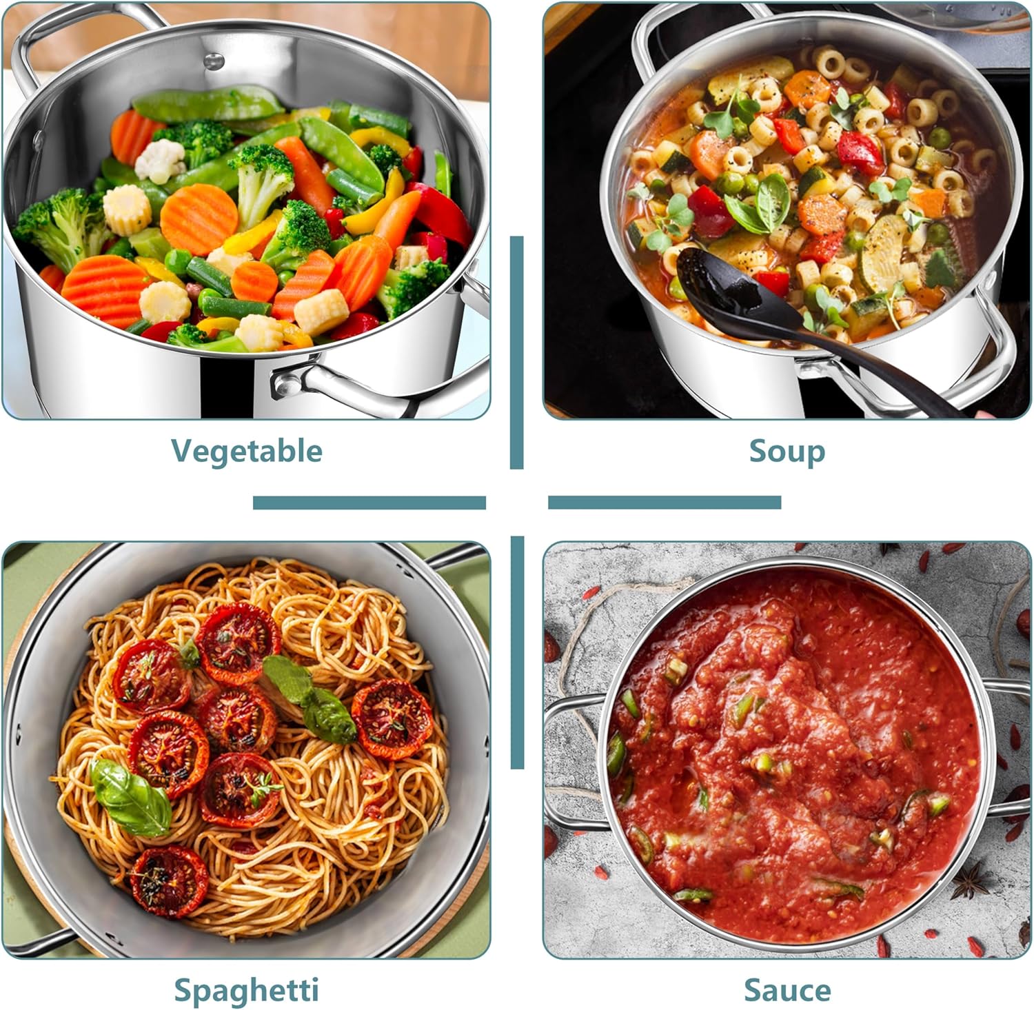- HEALTHY MATERIAL: Made of premium stainless steel ensures better corrosion and wear resistance, Cooking pot without coating will not flake or discolor and react with food, No need to worry about toxic substances into your food, Healthy and durable for all your daily cooking use
