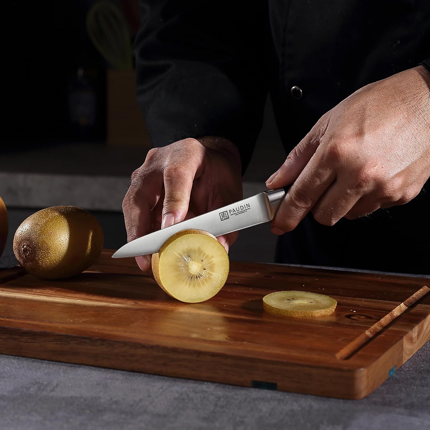 PAUDIN Utility Knife, Switzer Chefs Knife 5 Inch, Ultra Sharp High Carbon Stainless Steel Paring Knife, Multipurpose Kitchen Knife for Fruit and Vegetable Cutting with ABS Handle, Premium Gift Box
