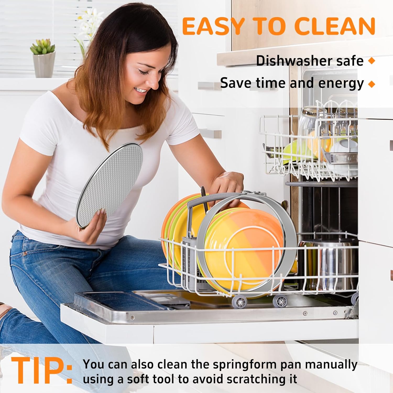 - Convenient Cleaning: The spring form pan for cheesecake can be washed in the dishwasher to save your time and energy. The silver tone adds a touch of modern elegance, and to avoid scratching it, you can clean the springform pan manually with a soft tool