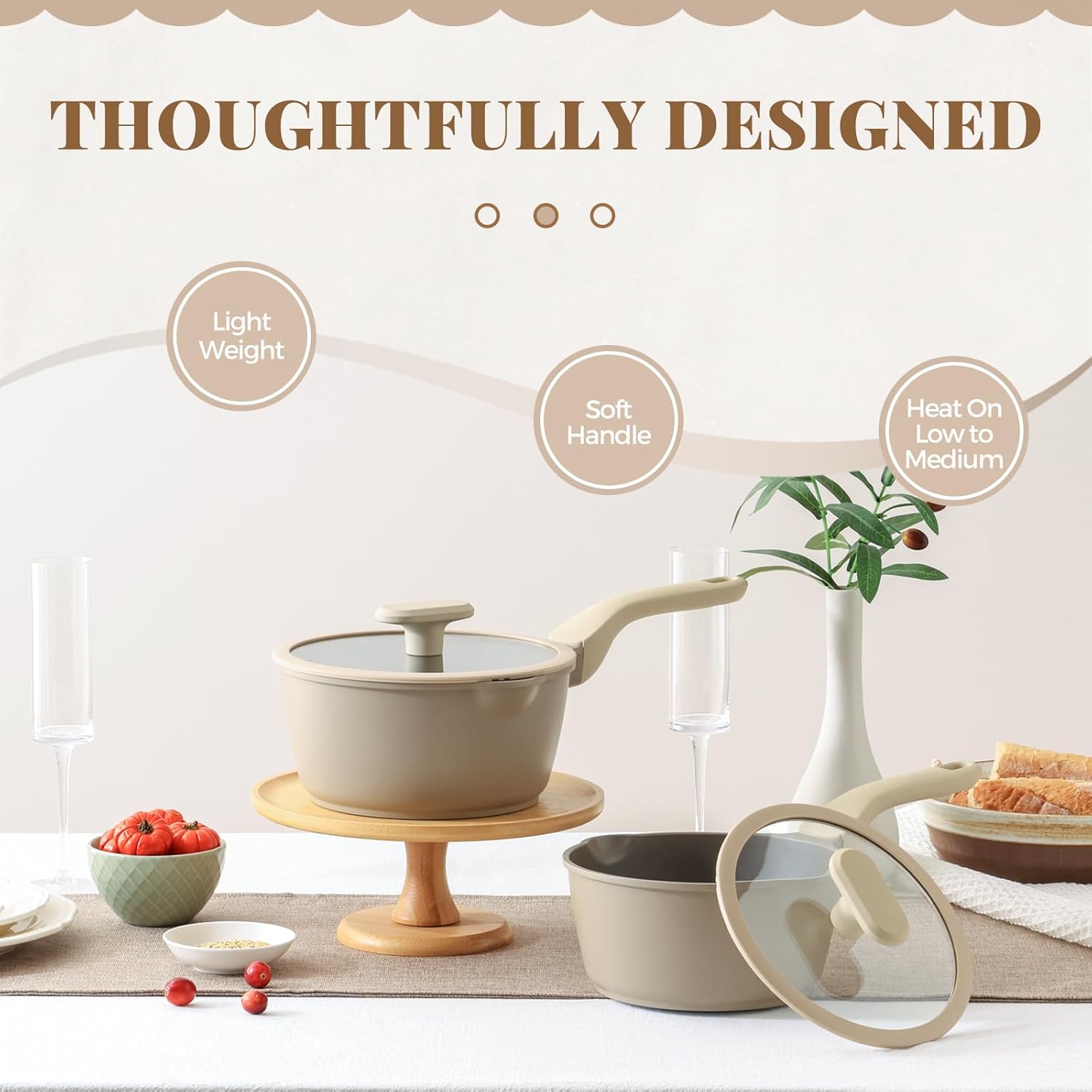 Nonstick Saucepan Set with Lids, 2QT and 2.7QT Sauce Pan Set, Non Toxic Sauce Pots with Pour Spouts for Multipurpose Use, PFOA Free, Induction Compatible Apricot