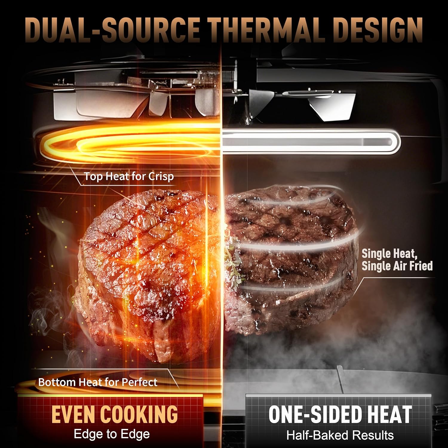 - ๐. ๐๐ซ๐๐ฆ๐ข๐ฎ๐ฆ ๐๐ญ๐๐ข๐ง๐ฅ๐๐ฌ๐ฌ ๐๐ญ๐๐๐ฅ & ๐๐๐ญ๐๐ฅ ๐๐ฎ๐ข๐ฅ๐ - Odorless air fryer in metal construction eliminates plastic smells and overheating risks (after well cleaning). Commercial-grade stainless exterior and galvanized metal interior ensures durability and consistent heating for safer family meals (Note: there are two PPS protective glide rails in the interior. Temperature resistant 553ยฐF)