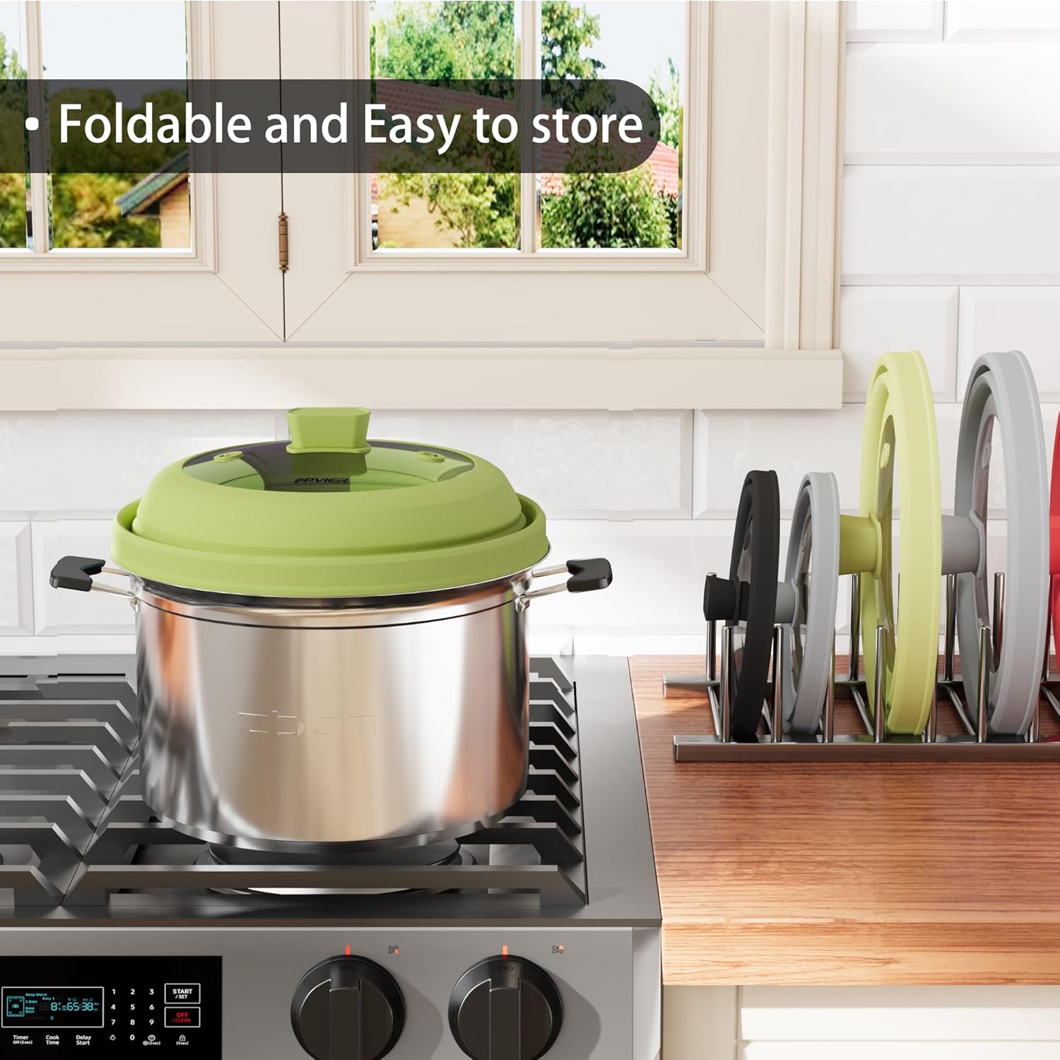 - 【SILICONE HANDLE】 The silicone handle on the top is anti-scalding and safe, so you can open it without spending a lot of time waiting for it to cool down without having to wait for it to cool