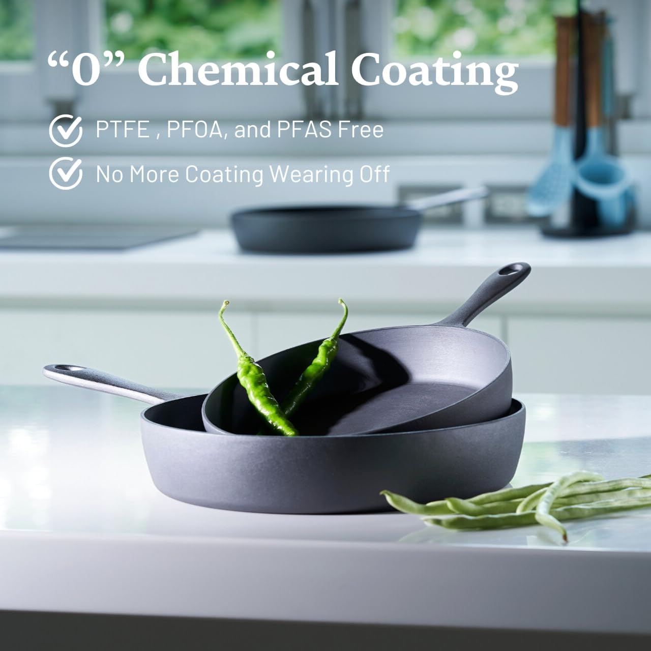 - Chemical-Free: This large cast iron skillet is free from PFAS and chemical coatings, enhancing the natural nonstick seasoning over time, making it a safe, easy-to-clean option for uncoated iron pan.
