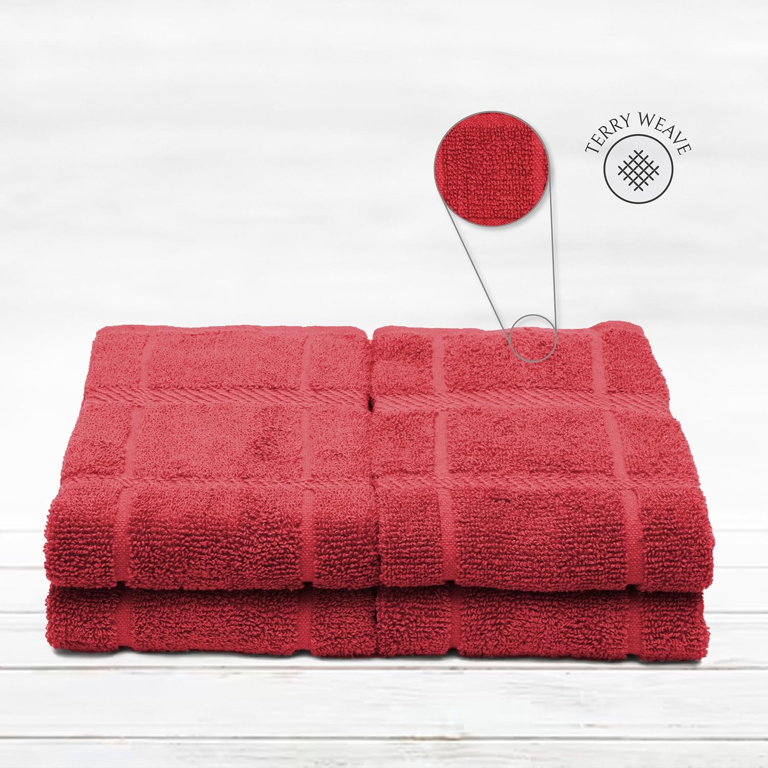 100% Cotton Terry Dish Towels, 4 Pack Plain, 16 x26 Inches, Super Soft and Absorbent Kitchen Towels, Perfect for Kitchen Cleaning and Dish Washing | RED