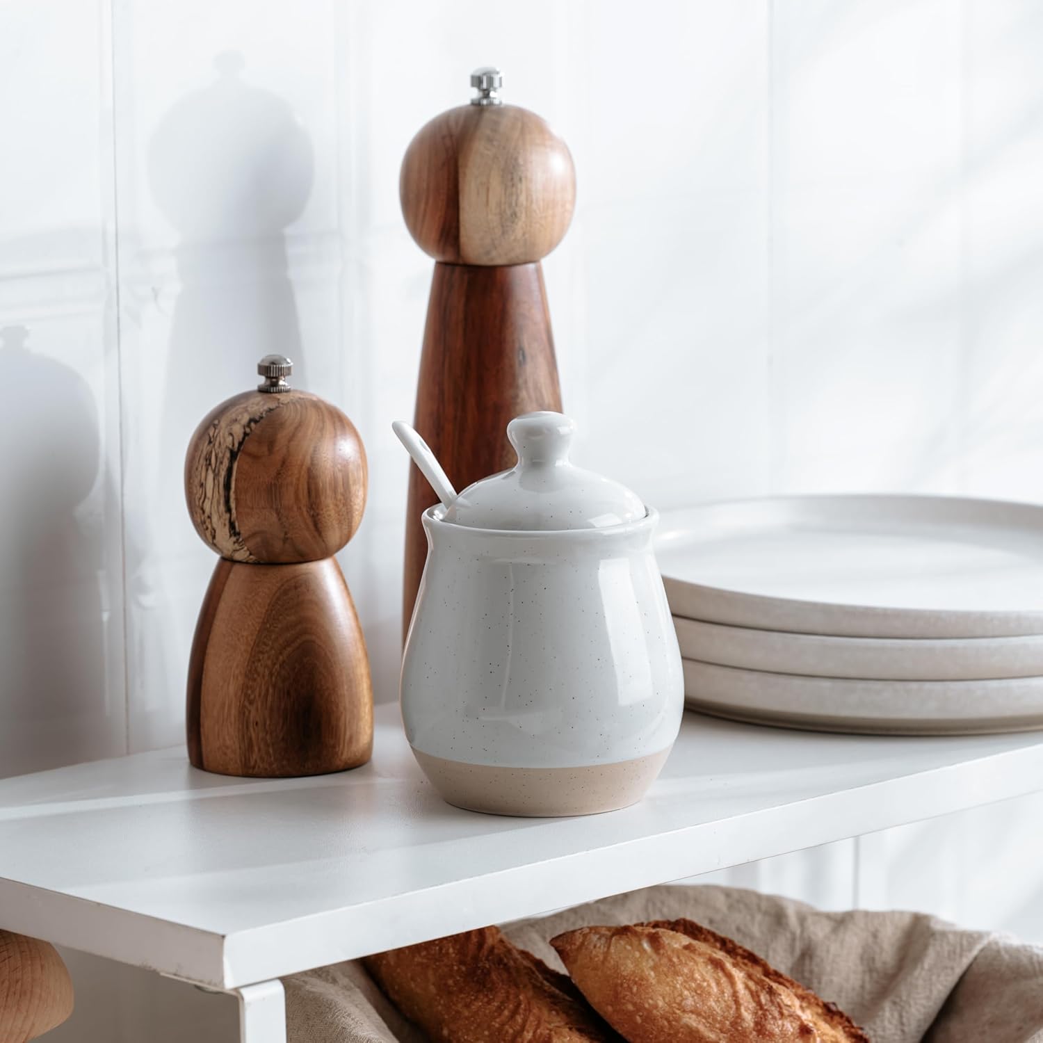 - Thoughtful Design: This sugar bowl comes with a snug-fitting lid and a handy mini spoon. The lid keeps sugar fresh and dust-free, while the spoon ensures precise portions without messy hands. Plus, the built-in spoon rest keeps everything tidy, and the wide-mouth design makes filling and scooping effortless.