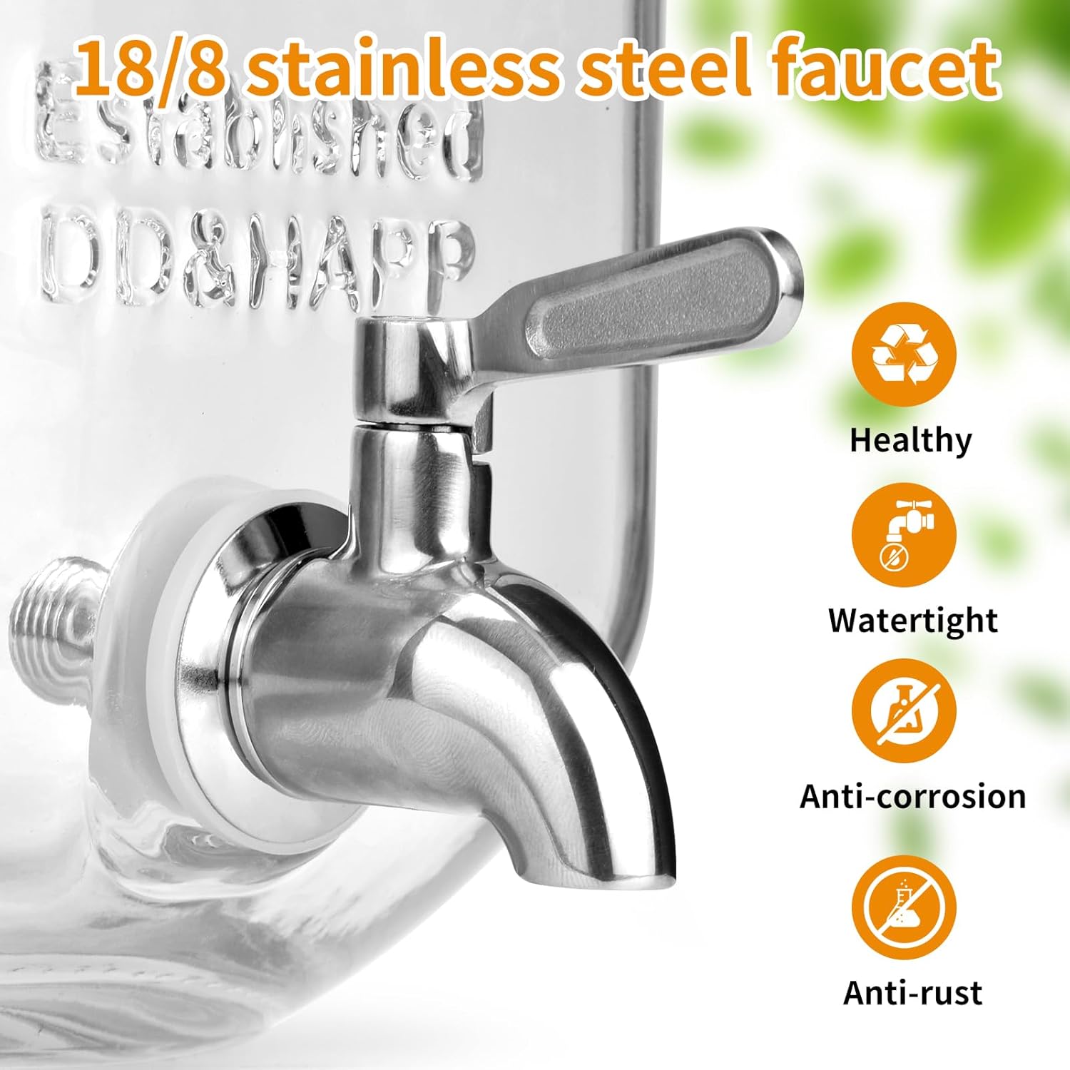 DD&HAPP Glass Beverage Dispenser With Stainless Steel Spigot,1.2 Gallon Mason Jar Drink Dispenser,Sun Tea,Lemonade & Juice Dispenser for Parties, Weddings & Events.Leak-Proof, Infuser Included.