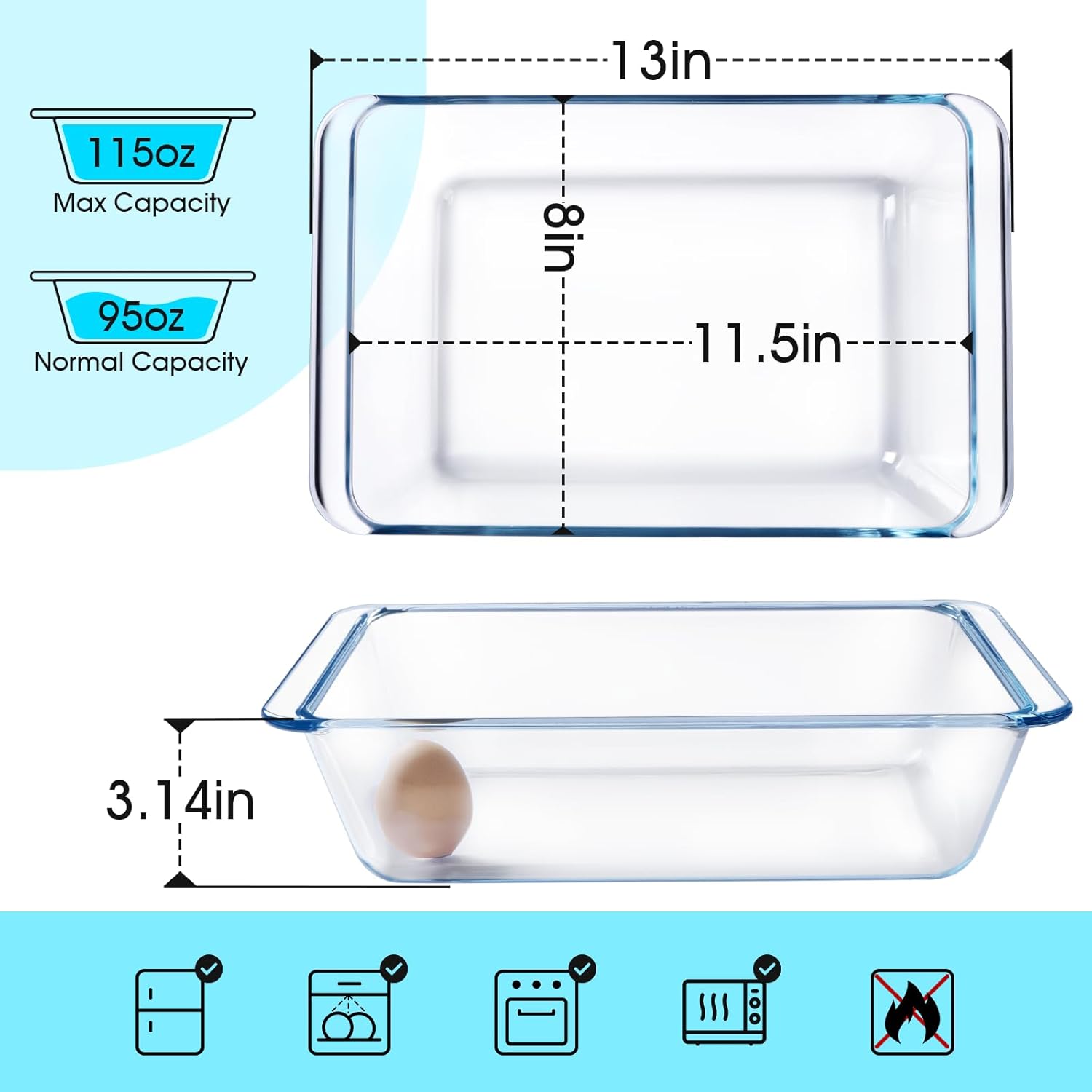 NUTRIUPS 3.7QT Deep Glass Baking Dish,(11.5×8inches)Large Glass Baking Pan,Rectangular Lasagna Pan,Glass Casserole Dish,Microwave & Oven Safe