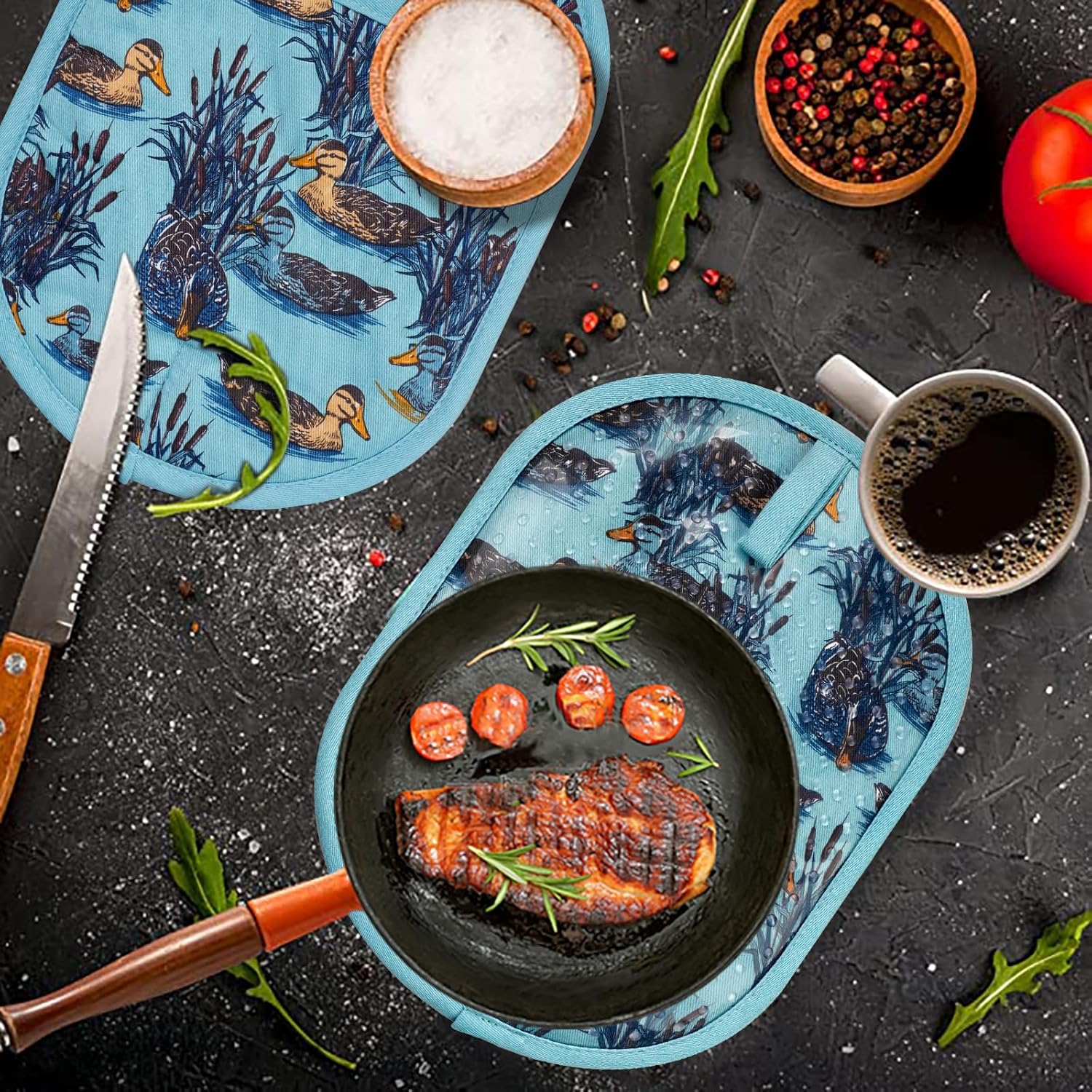 Pot Holders Set of 2 with Transparent Clear Silicone Shell and Nice Duck Flower Cotton Lining, Heat Resistant to 500 F Kitchen Oven Gloves Pot Holder for Cooking (Wathet Blue, Potholders)