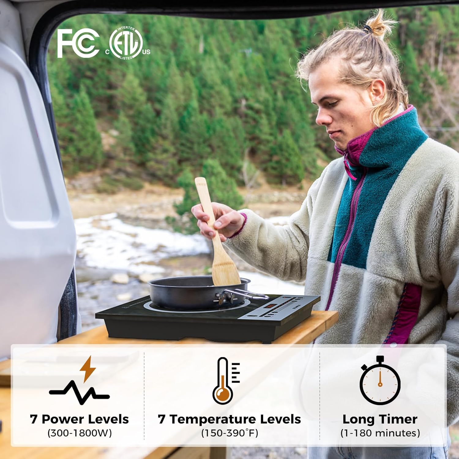 CAMPLUX Portable Induction Cooktop 1800W, 120V Single Burner Electric Cooktop with Kids Safety Lock, 7 Power & Temperature Levels Setting Induction Burner with Timer, Countertop or Built-in