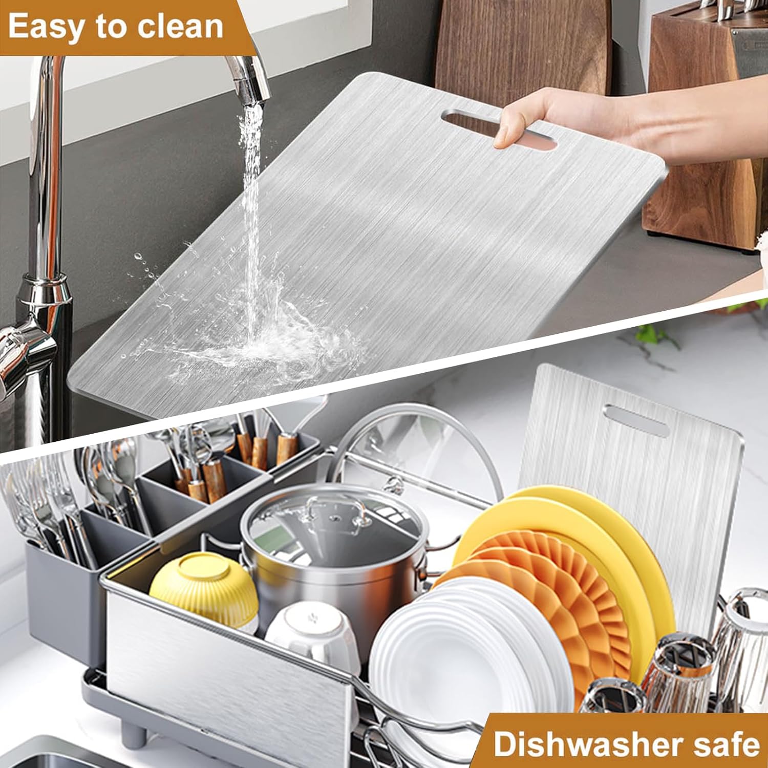 New Titanium Cutting Board-Stainless Steel Cutting Boards for kitchen,Double-Sided Food Grade Non Toxic Cutting Board,Chopping Boards Necessities for Home Outdoor Camping Meal Prep,Easy to Clean (L)