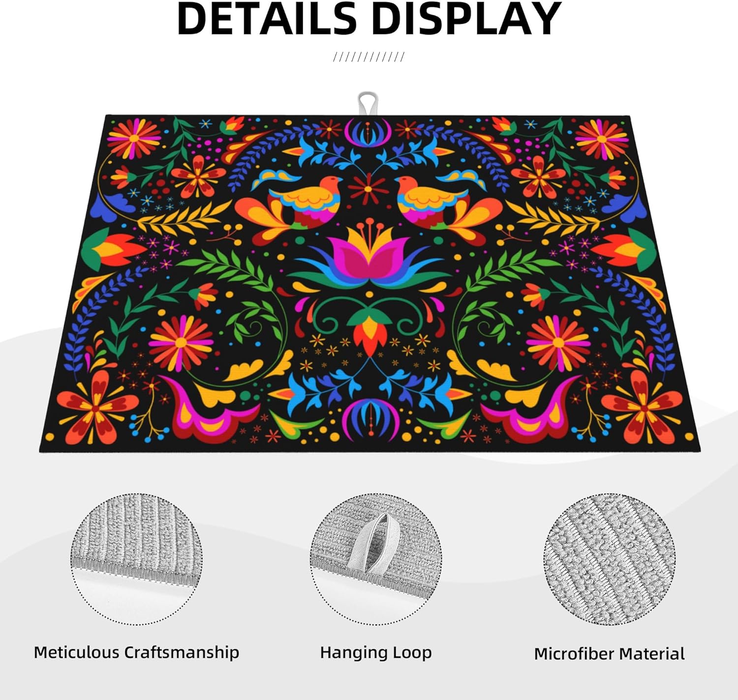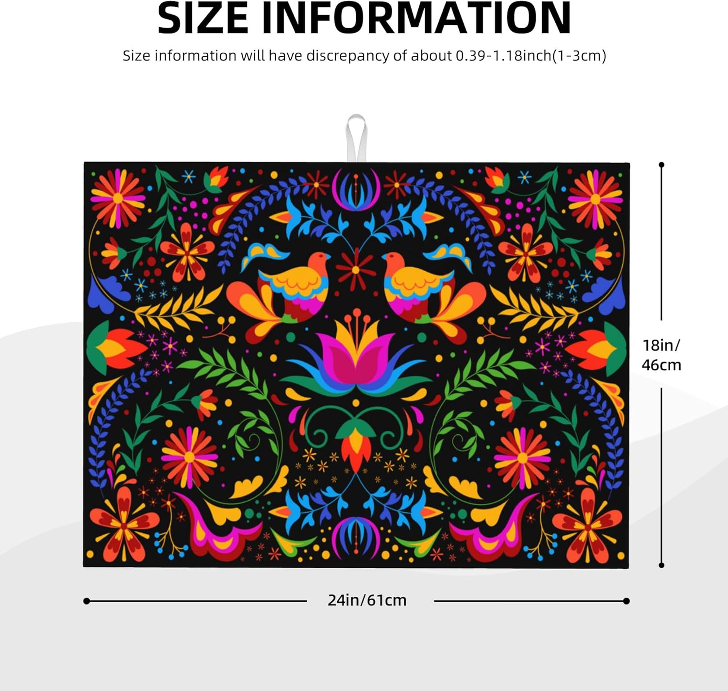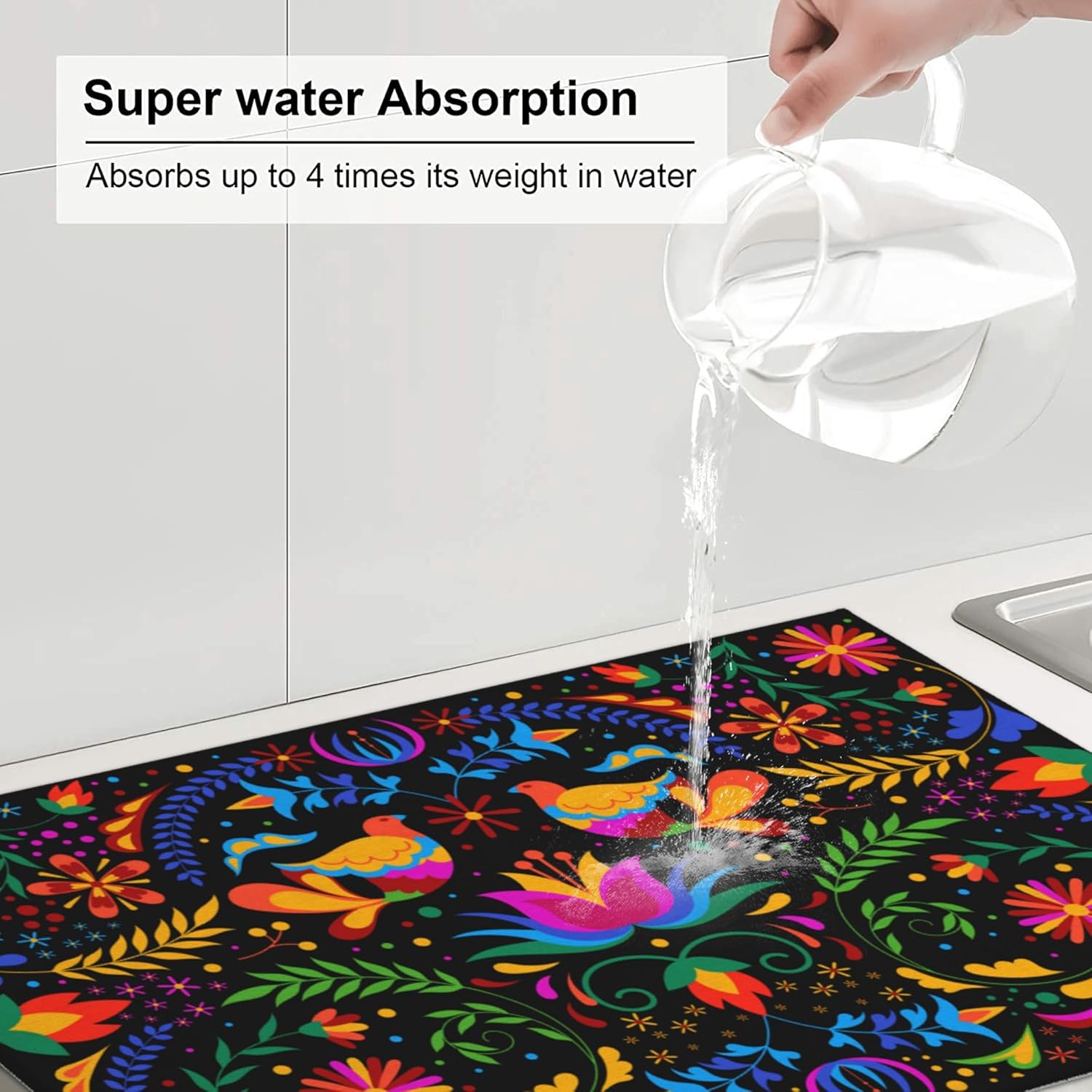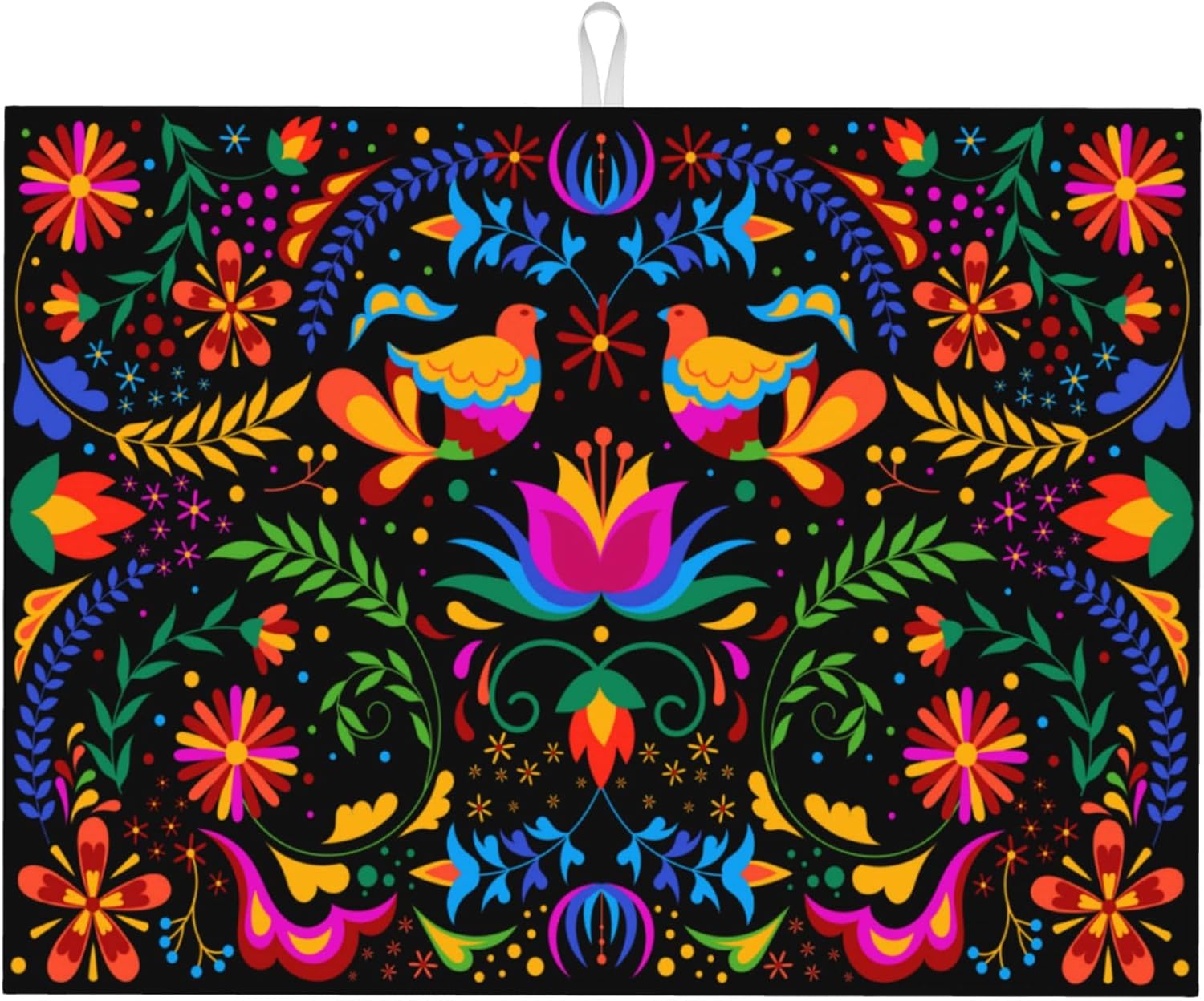 Mexican Flower Microfiber Dish Drying Mat for Kitchen Counter Mexican Dishes Pad Black Dish Drainer Rack Mats 18"x24" Absorbent Washable Reusable