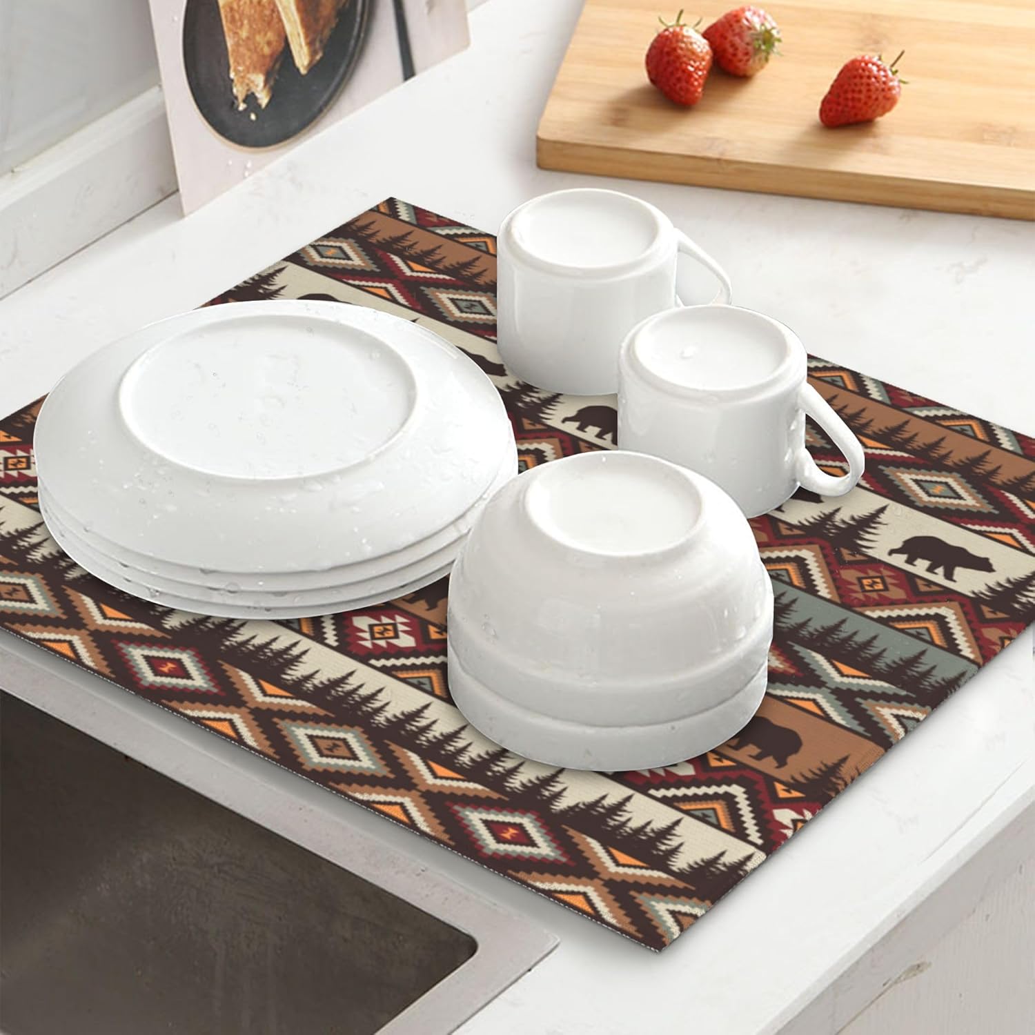 - Cute print can easily dress up your kitchen dining room. Drying pad suitable for draining racks to keep the counter dry and clean, or you can place pans, bowls, plates, pots, cups, bottles, tableware, ect