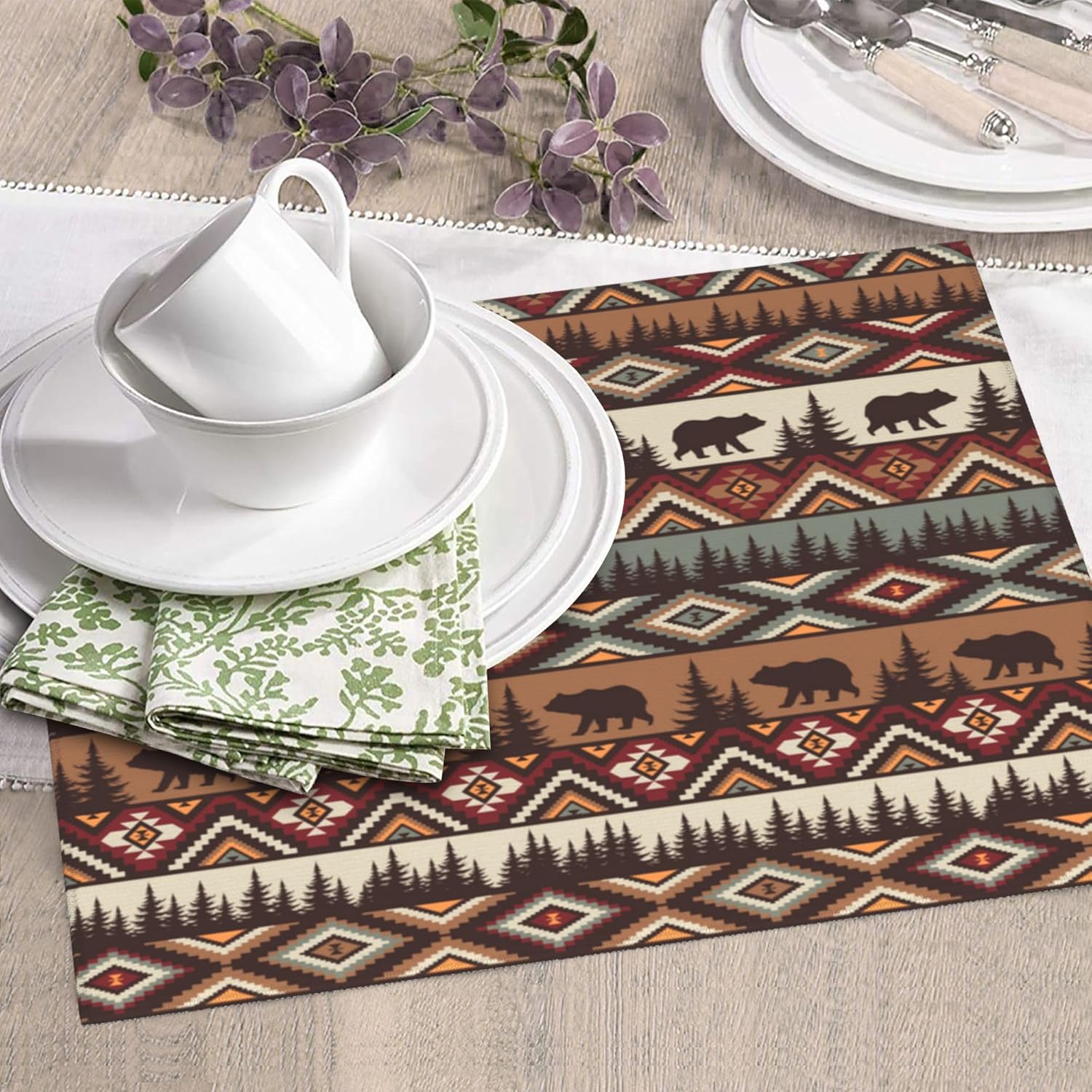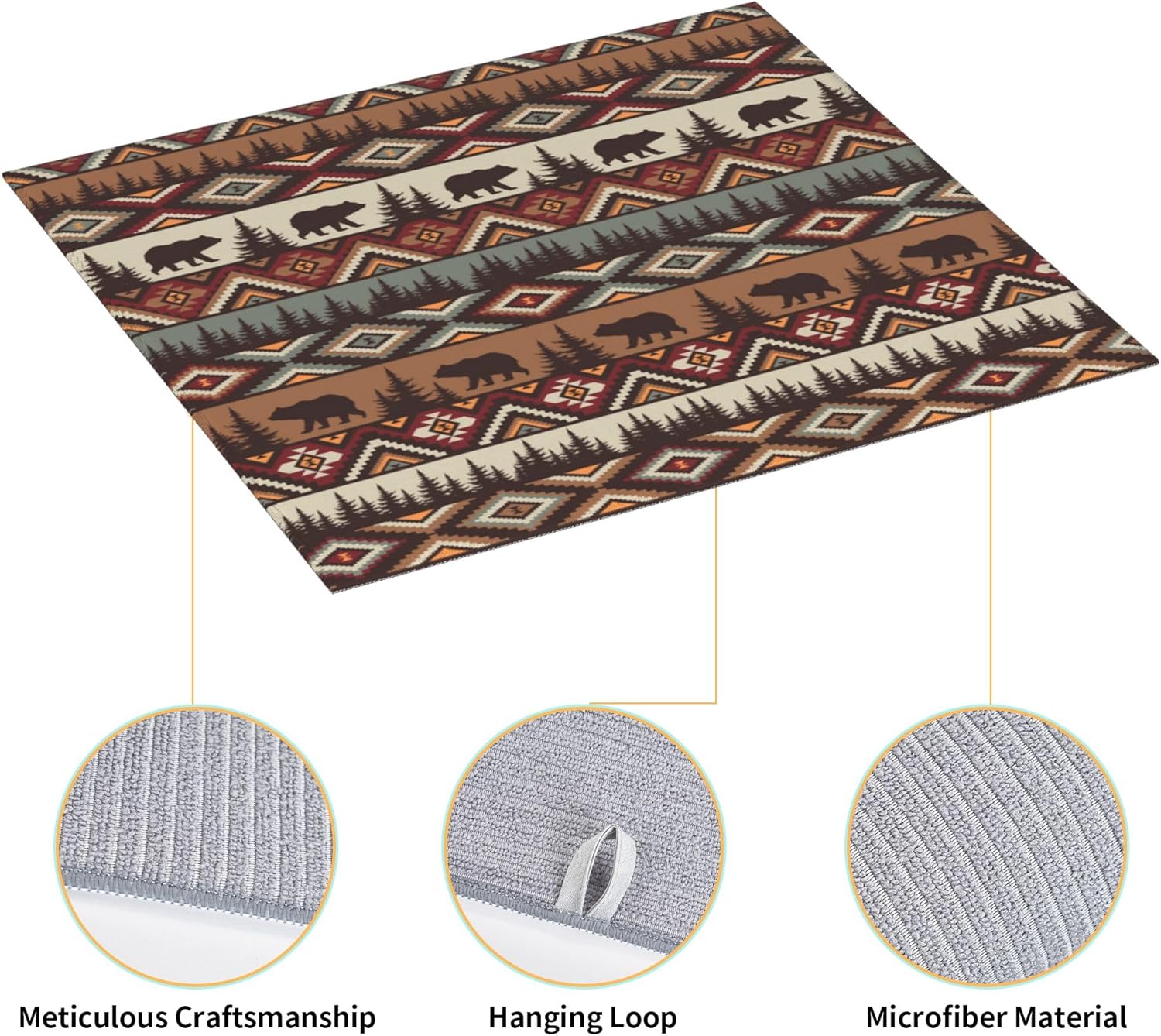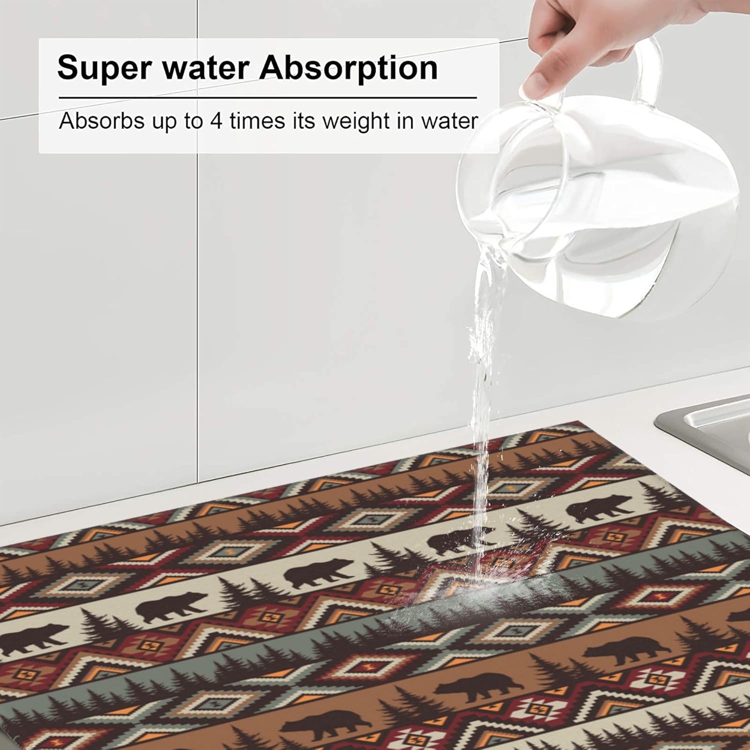 Vintage Rustic Dish Drying Mat for Kitchen Counter Bear Mountain Dish Drainer Rack Mats 16x18 Inch Absorbent Reversible Drying Pad Black