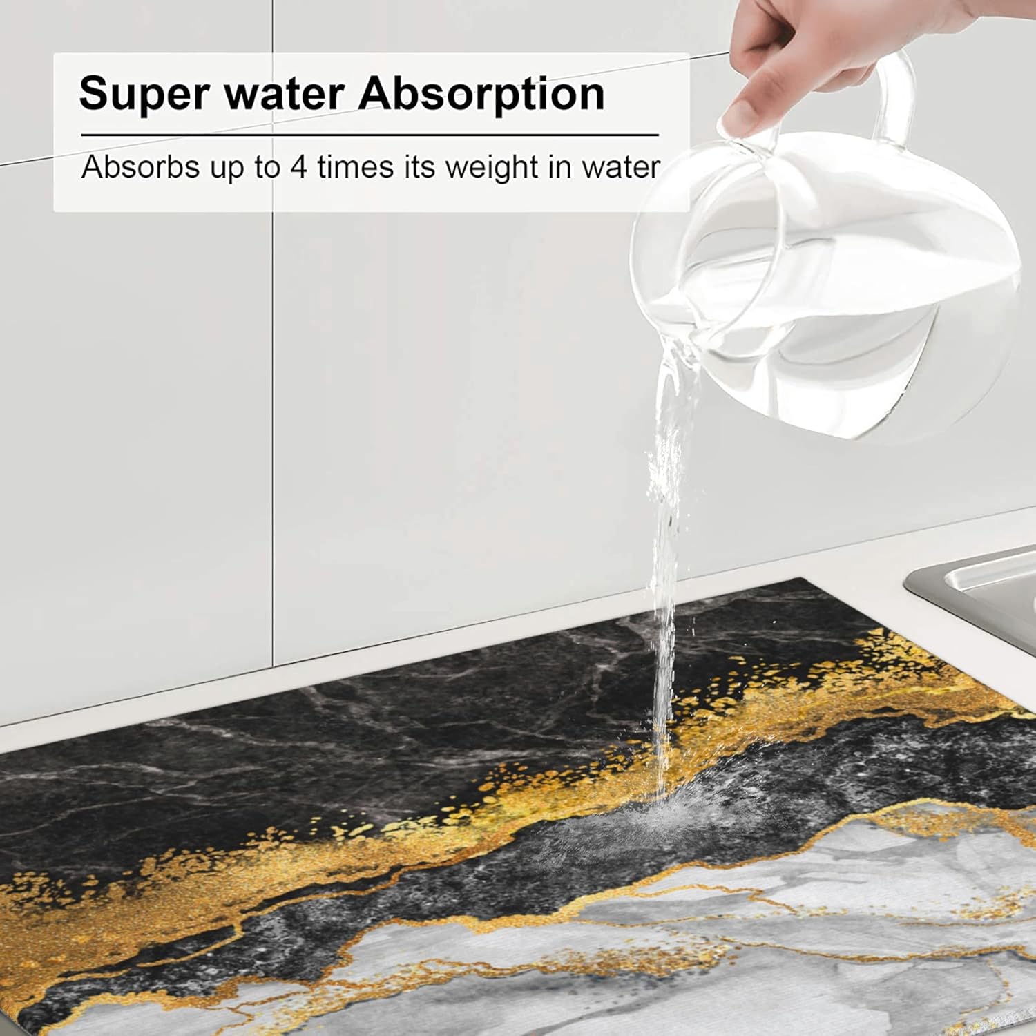 - Kitchen drying mat made of absorbing microfiber, and the middle is made of composite sponge, soft absorbent, non-slip, reversible, reusable