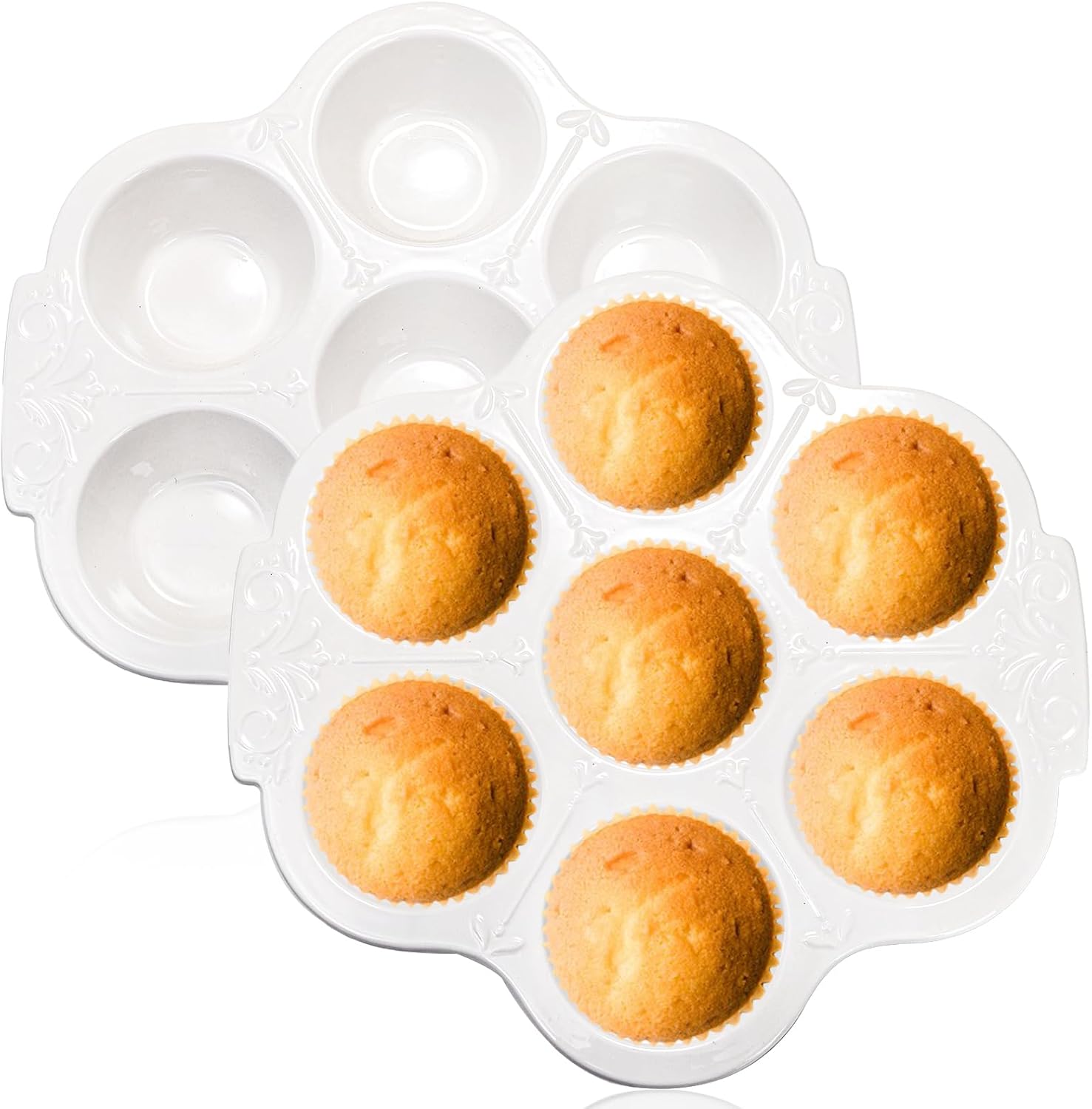 - Exquisite Design and Quality: Made from good quality ceramic, these flower shaped muffin pans feature a beautifully intricate European floral design on the handles, adding style to your kitchen. The pure white color complements any kitchen decor, making these pans as beautiful as they are functional.