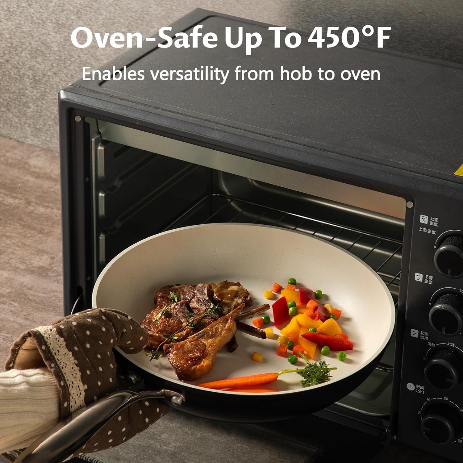 UCC LIFE Nonstick Frying Pan Skillet, wok pan, Stainless Steel Handle, PFOA Free Compatible with All kitchen Stovetops (12 Inch White)