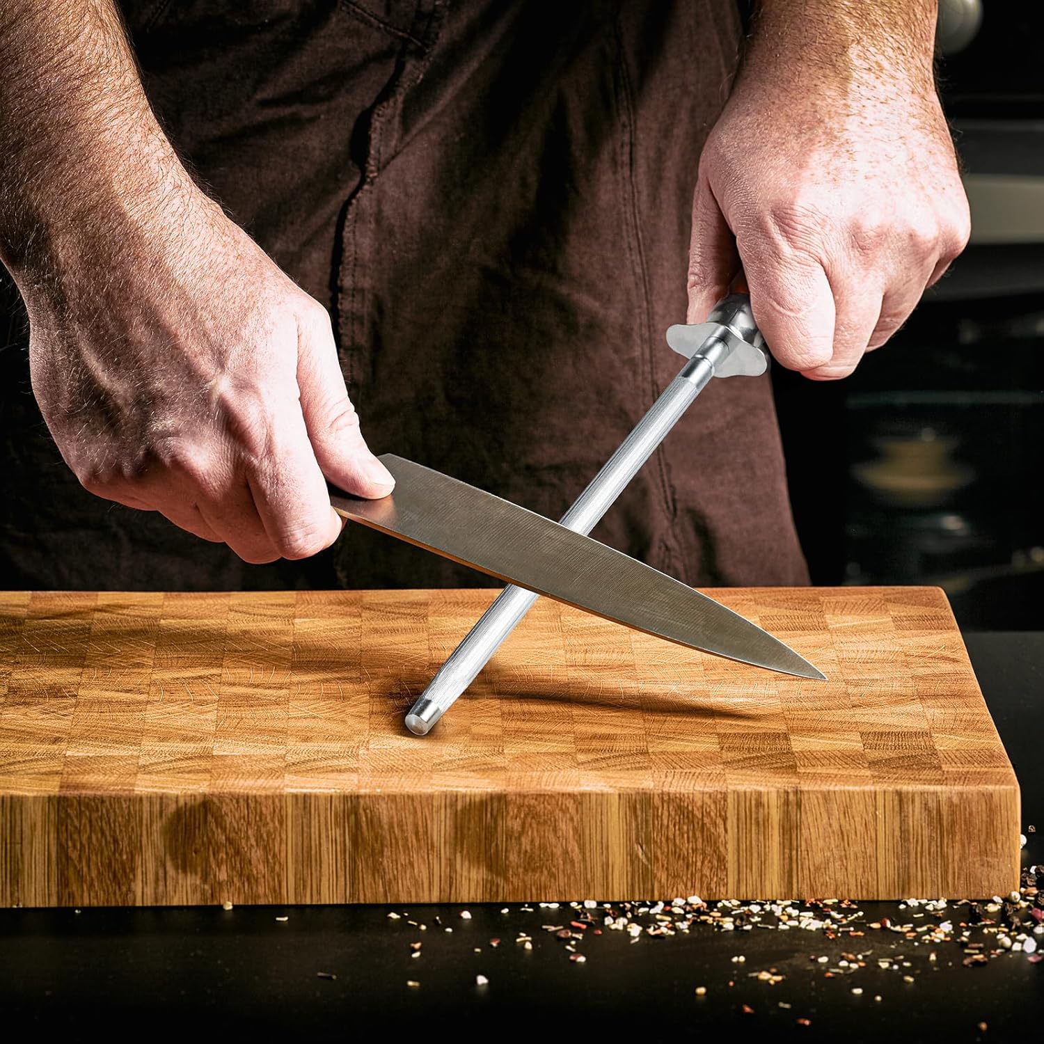 Knife Sharpener Rod, Kitchen Knives Sharpener Carbon Steel Professional Knife Sharpening Steel, Honing Rod with Hanging Holes (13 inches), B