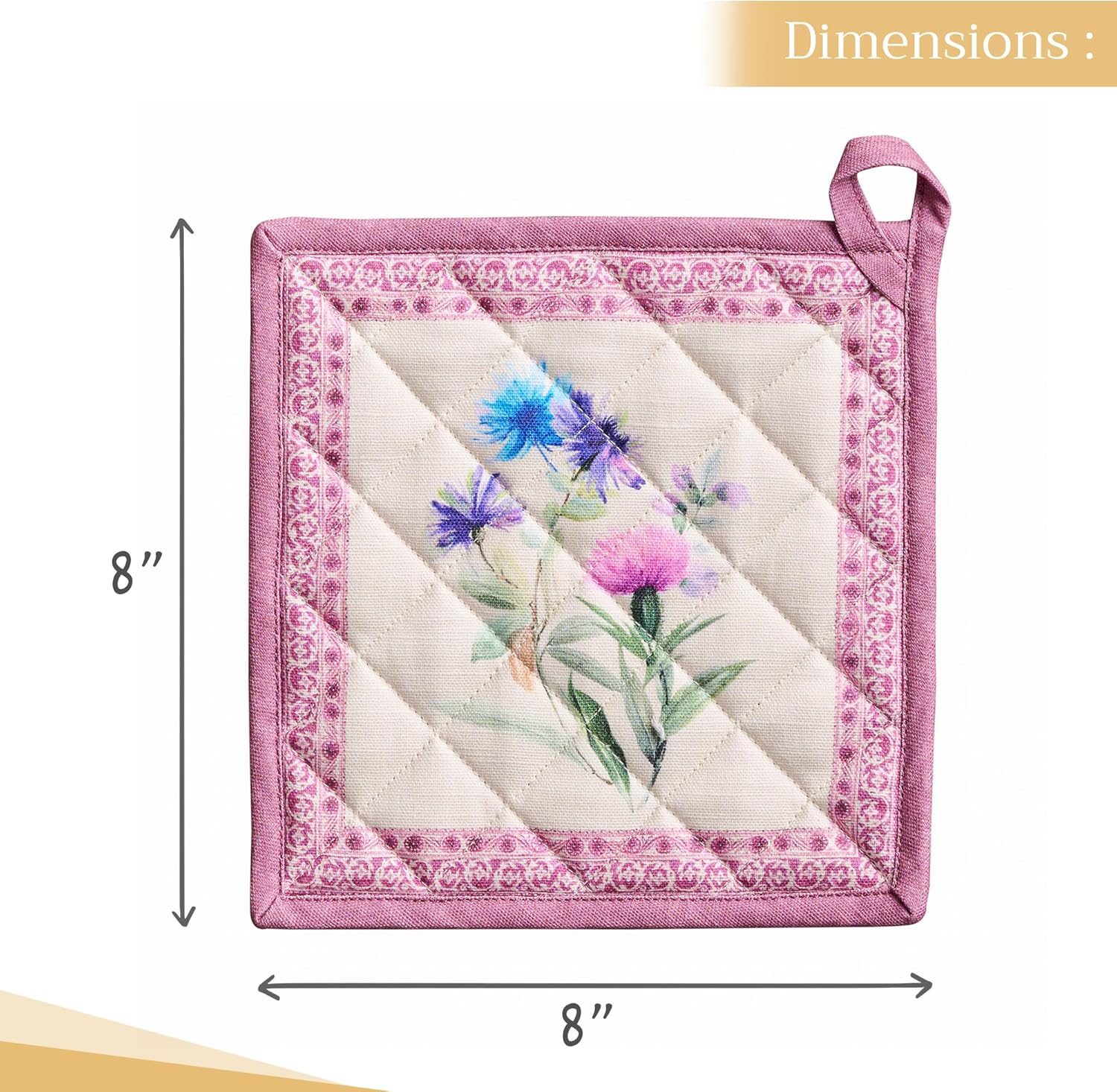 Maison d' Hermine Pot Holders Set 100% Cotton Heat Resistant Potholders 8" x 8" Hot Pads with Loop BBQ, Cooking, Baking, Grilling, Kitchen, Handling Hot Pans Spring/Summer (Pack of 2, Chardon)
