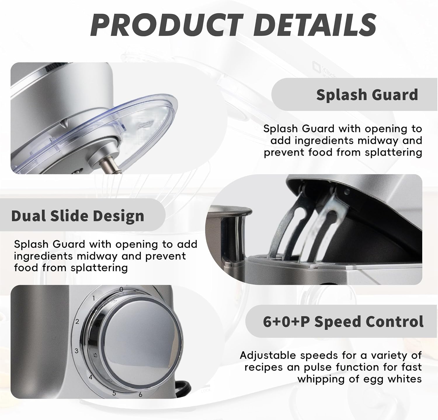 - 6 Speeds and Pulse Function: 6 speed mixers for everything from slow stirring to fast precision mixing, with an additional pulse setting that reaches top speed in under a second for quick whipping of egg whites