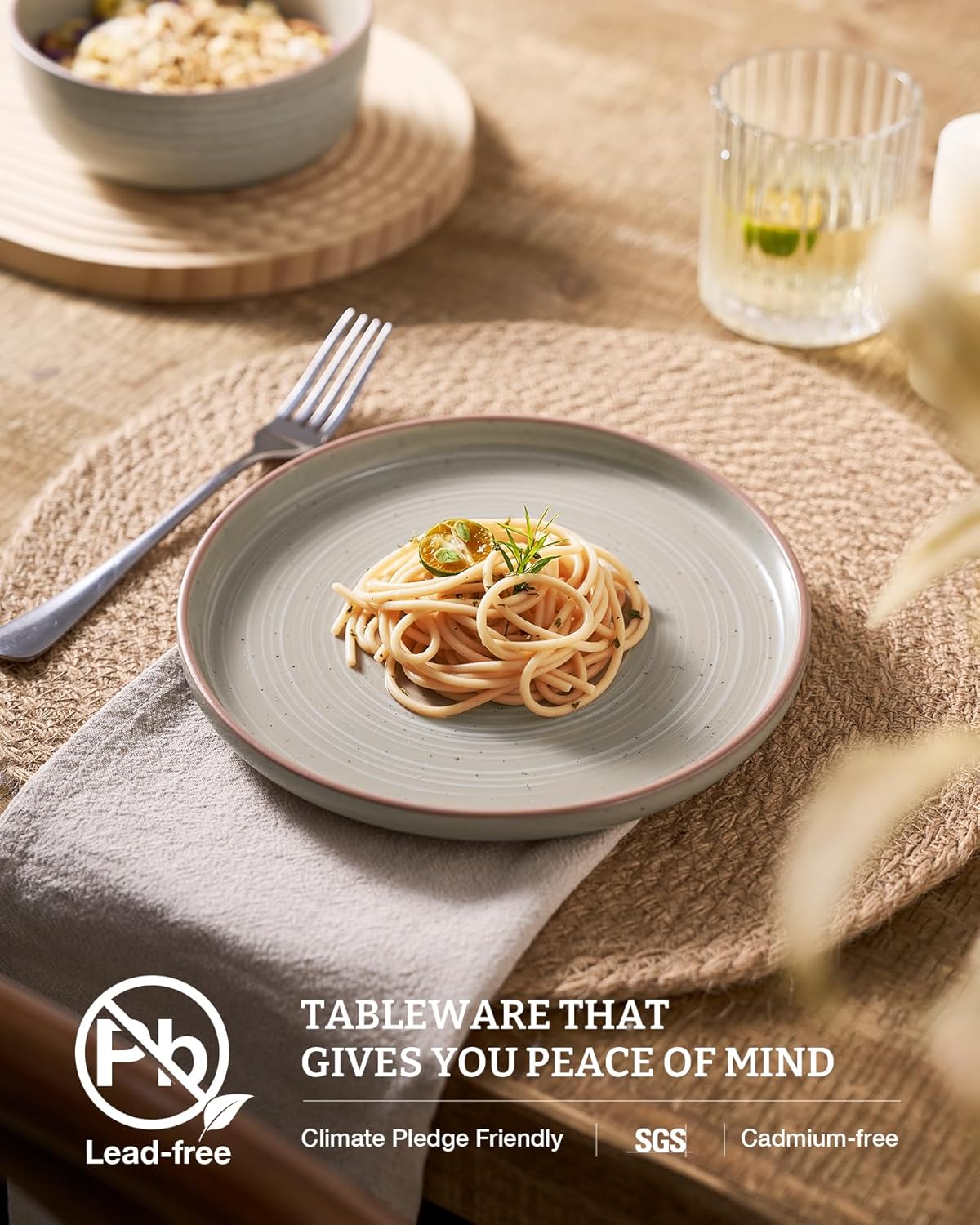 - 【SCRATCH RESISTANT】Our glaze is fired at 2340℉ for 13.5 hours to form a strong scratch resistant surface. No need to worry about scratches from your forks or knives.