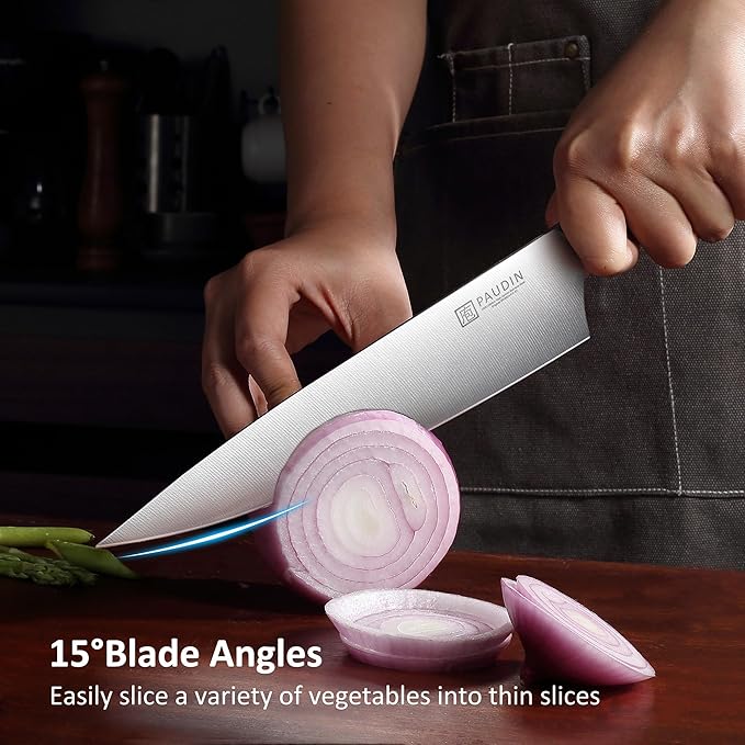PAUDIN Chef Knife, 8 Inch Kitchen Knife, Ultra Sharp Knife - High Carbon Stainless Steel, Professional Chefs Knife, Ergonomic Handle with Three Rivets, Kitchen Gadgets with Premium Gift Box
