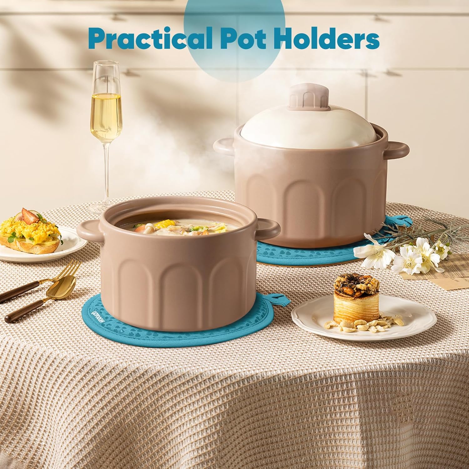 - Kitchen Essentials: These sets of oven mitts and pot holders feature heart-shaped silicone prints that provide a strong grip and effectively prevent slippage. Bid farewell to awkward accidents and welcome effortless maneuvering in the kitchen. Whether you need to remove a hot casserole dish or adjust a sizzling pan,these silicone oven mitts pair will certainly come in handy