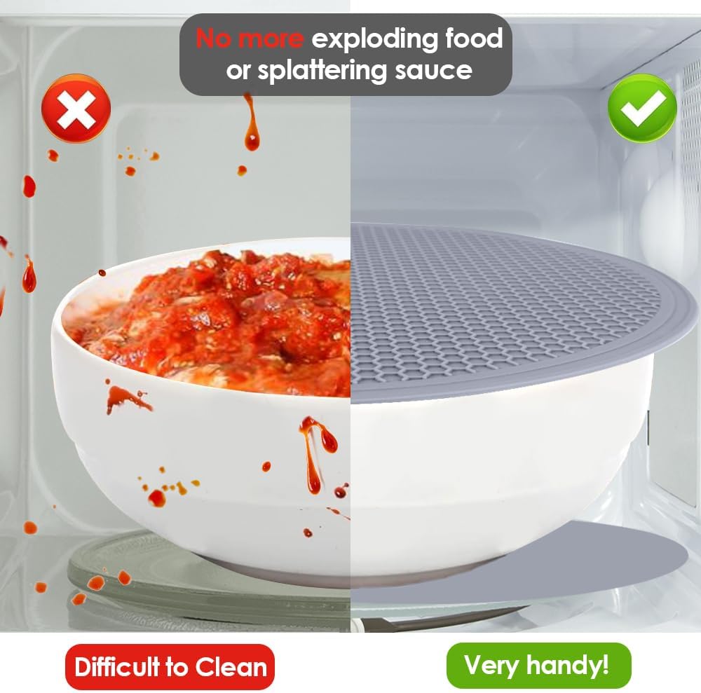 - 🥘Food Grade Silicone- Light grey silicone microwave mat made of food grade silicone, High heat resistant up to 446°F. BPA free, flexible and durable. Premium silicone materials ensure that they won't rust, crack or chip.