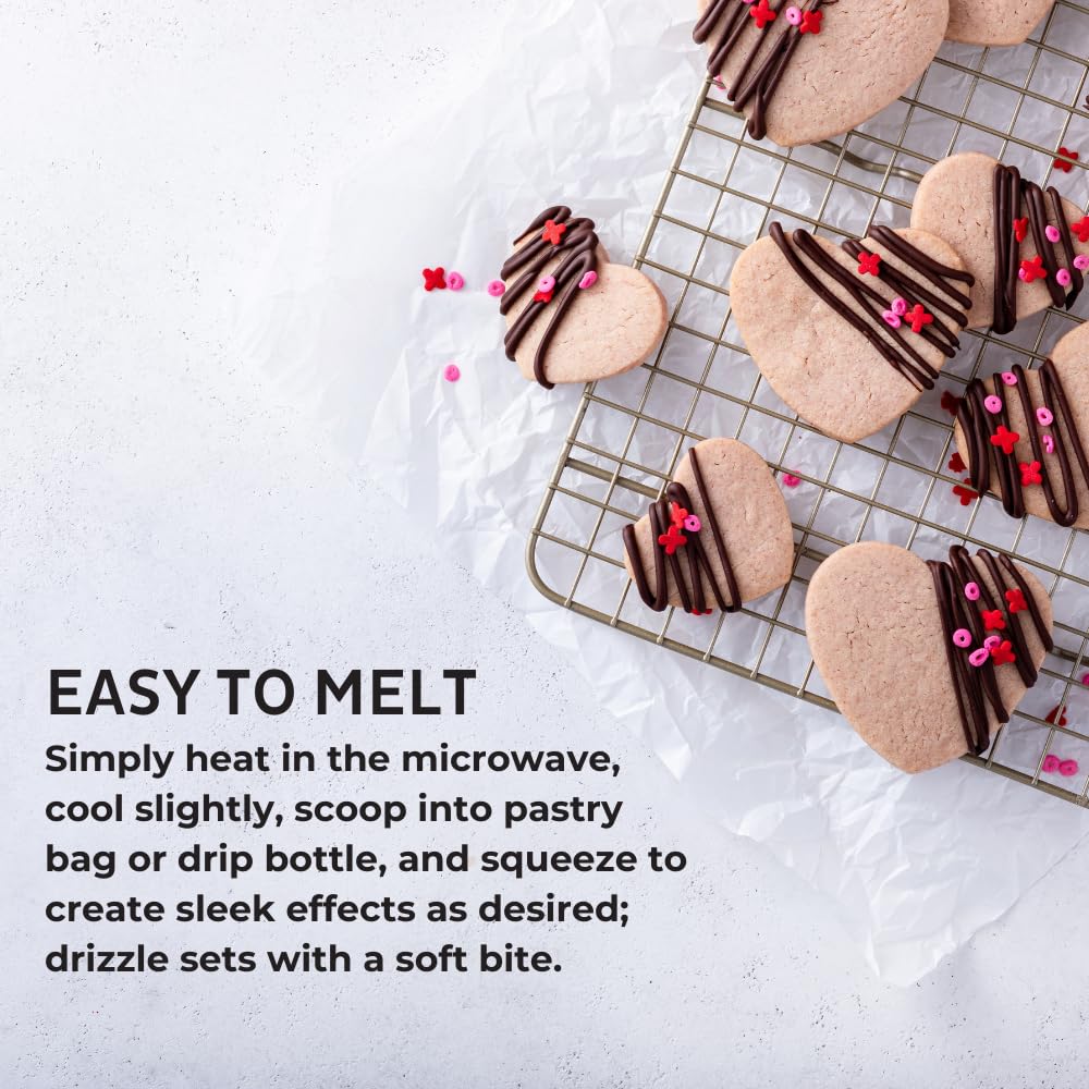- EASY TO MELT: Simply scoop the quantity desired into a bowl, heat in the microwave, cool slightly, gently stir, and apply to create sleek effects as desired; drizzle sets with a soft bite; this 6.6 lbs. pail will coat the top and drip the sides of approximately eight 12” cakes