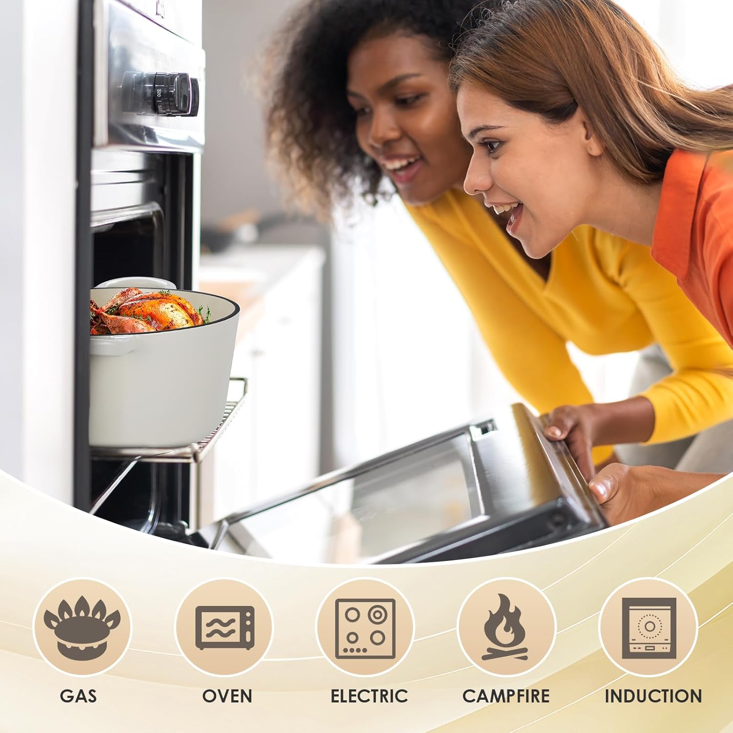 - DIVERSE COOKING OPTIONS- With the dutch oven, you are able to have multiple cooking choices, our dutch oven is good for bread baking, braising, stews, roasting, sourdough baking craze and various one-pot meals. This cookware can go from stovetop to oven.