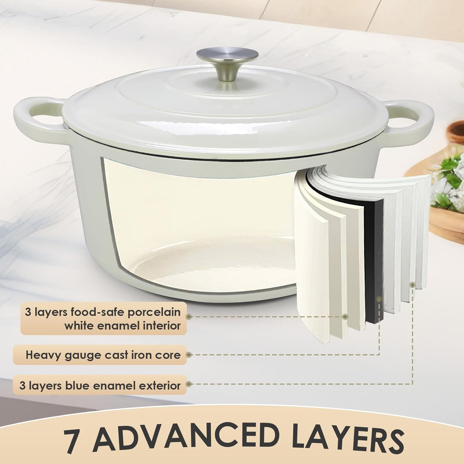- PRACTICAL FUNCTIONS- Our enameled cast iron dutch oven with lid is built with craftsmanship of sturdiness and durability which is essential to a long lifespan. The bottom and sides of the pot assures even heat distribution. The lid fits tightly which helps to lock in moisture in an effective way. All together just to ensure your food at its best taste and texture.