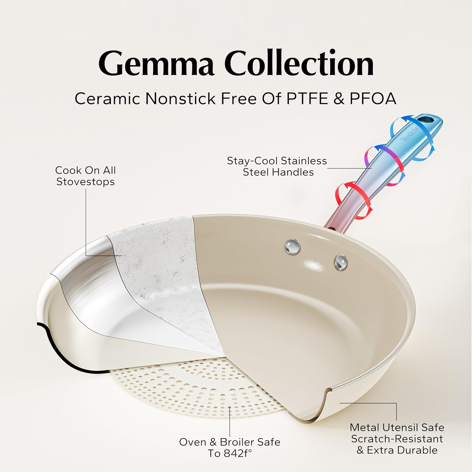 Redchef Ceramic Nonstick Cookware Set,14pcs Pots and Pans Set Non Stick,Induction Cookware with Stainless Steel Handle,Non Toxic Kitchen Cooking Set,Dishwasher & Oven Safe,PFAS PFOA & PTFE Free