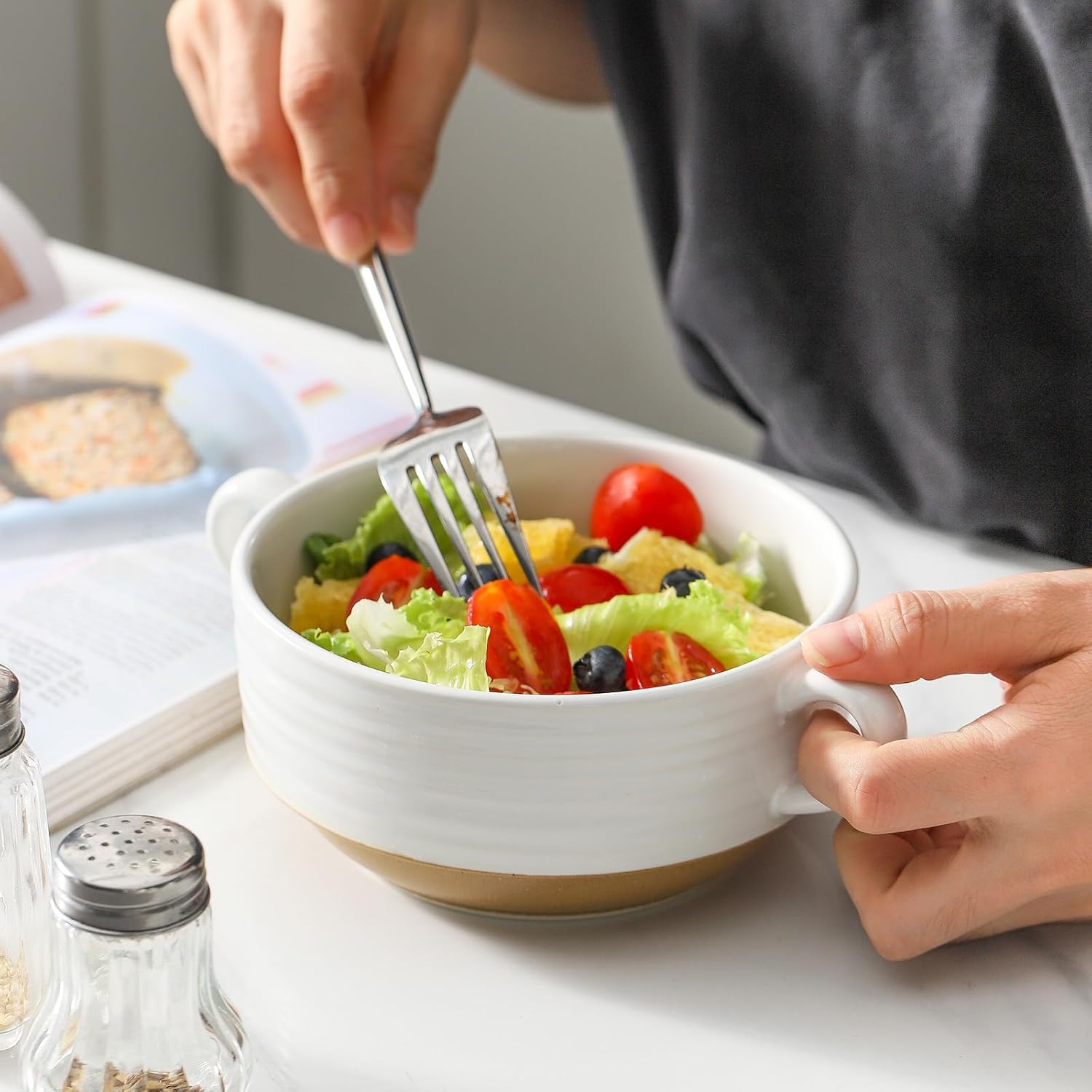 - Elegant White Design with Sturdy Handles: Featuring a sleek white finish, these soup bowls with handles bring sophistication to your table while ensuring a secure and comfortable grip