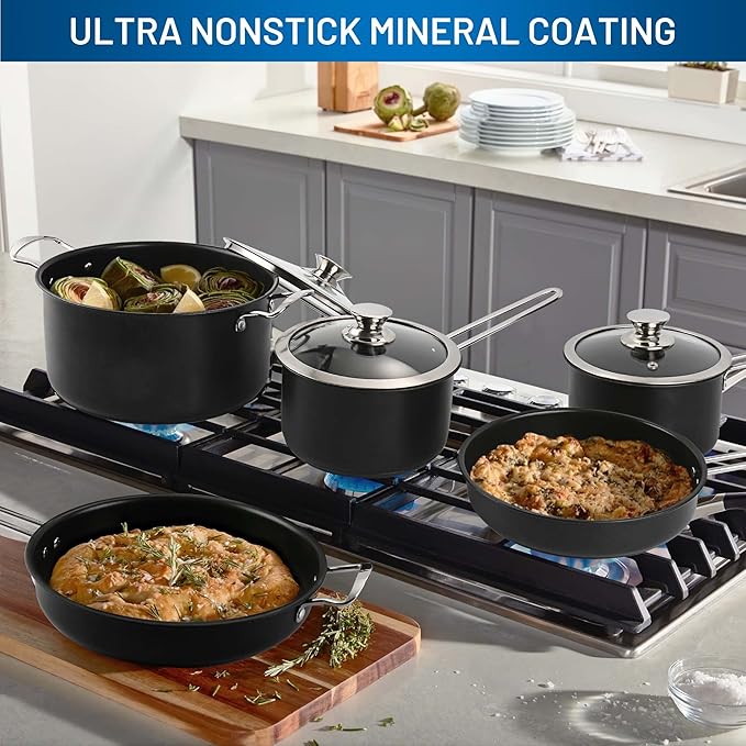 - Modern Essentials - Upgrade your kitchen with our 10-Piece contemporary cookware set, perfect for crafting delicious meals every day! stainless steel design and ergonomic handles fit any kitchen décor while delivering professional cooking results for all dishes, big or small.