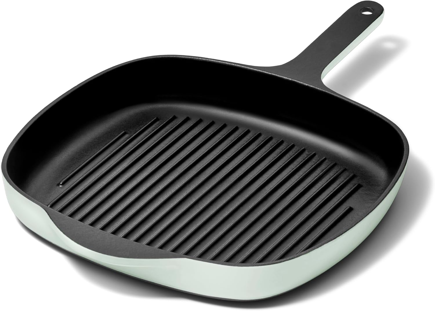 Caraway Enameled Cast Iron Grill Pan - 10.5” Grill Pan for Stovetop Cooking - 3 Layer Enamel Coating - No Seasoning Required - Compatible With All Stovetops - Free From Forever Chemicals - Light Mist
