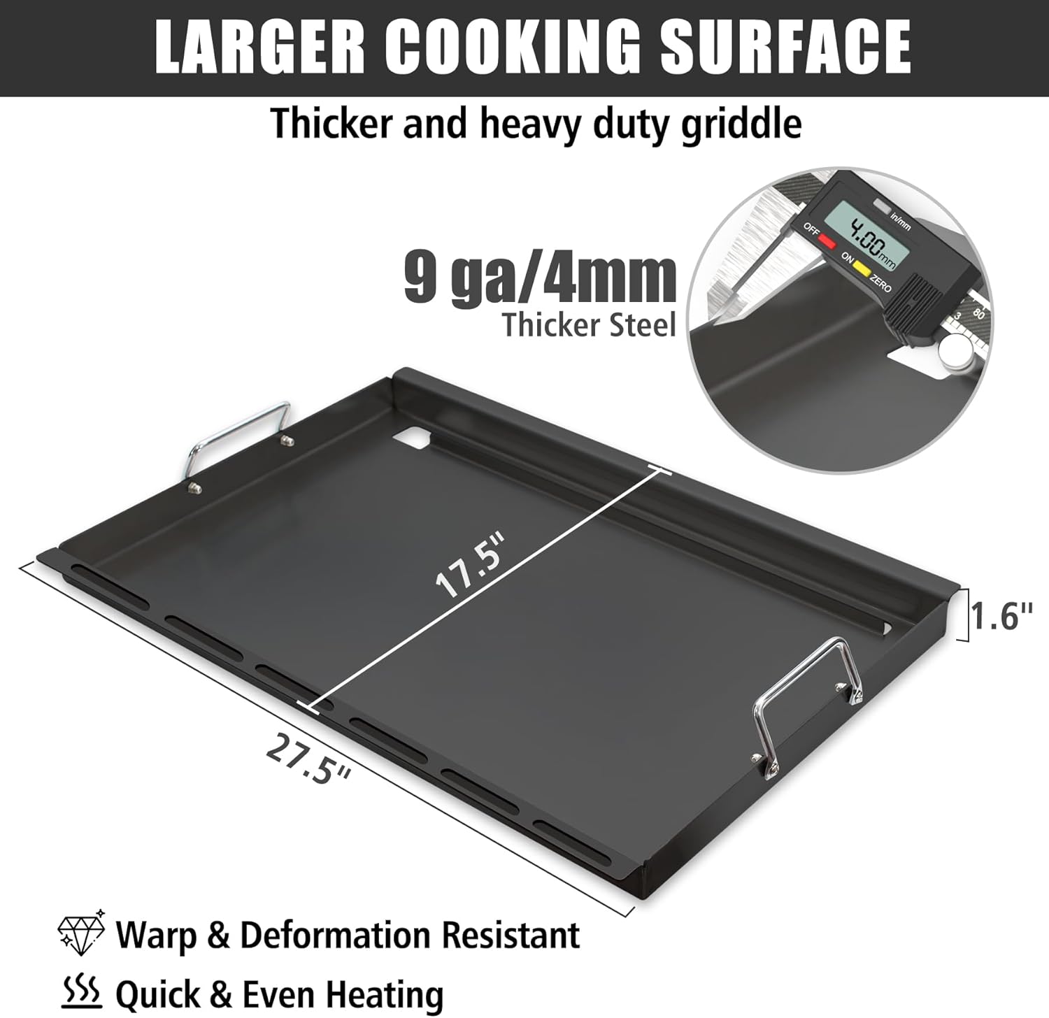 - Versatile Griddle for Every Meal: Transform your Spirit grill into a full-sized griddle in seconds. Perfect for pancakes, eggs, fajitas, bacon, burgers, and more! The large cooking surface (27.5 x 17.5 inches) lets you cook multiple items simultaneously, making it ideal for family gatherings, parties, or meal prep.