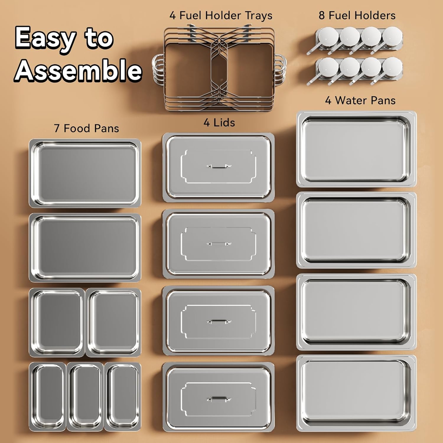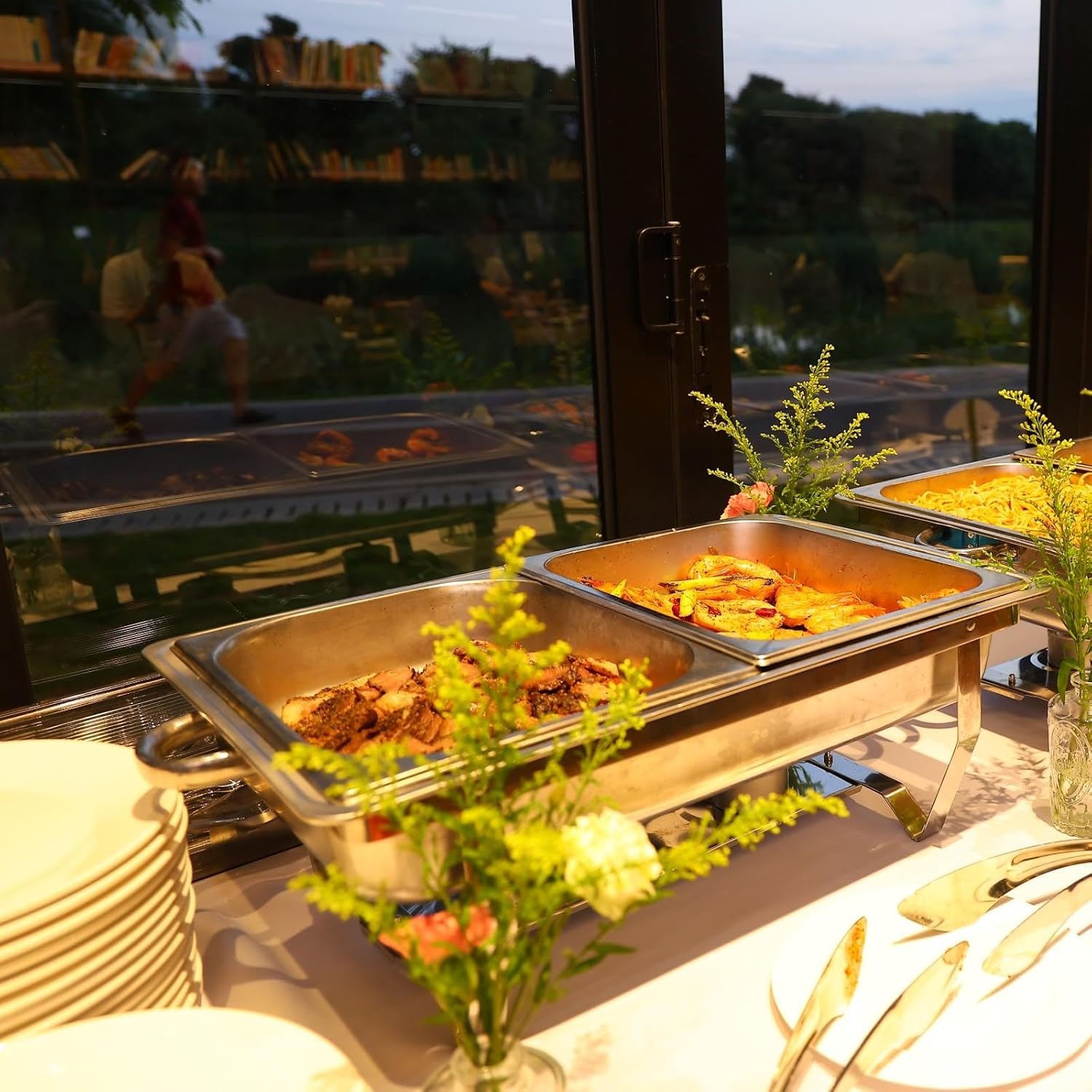 - WIDE APPLICATION: This stainless steel buffet warmer is perfect for catering, parties, hotels and weddings. Its exquisite design will get a lot of compliments from guests at your party. If you have any problems with our chafing dish buffet set, please contact us.