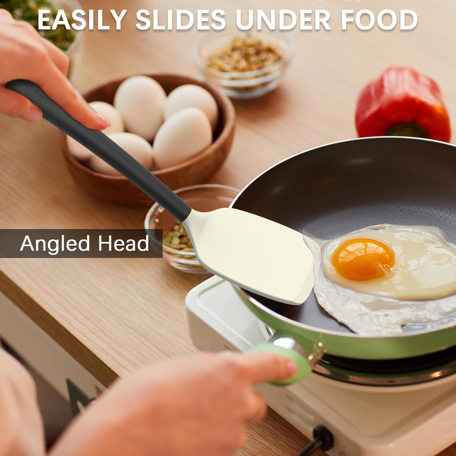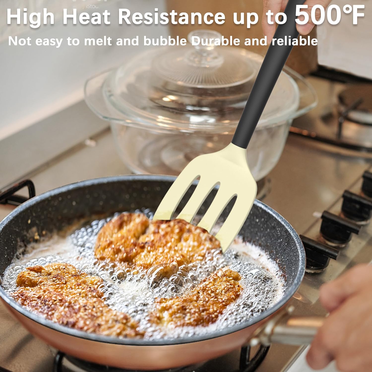 - [Sturdy Yet Flexible]: The kitchen spatula turner set features a reinforced nylon core, a silicone handle that makes the grip more comfortable, and the flexible head provides precise control, making flipping and stirring easier