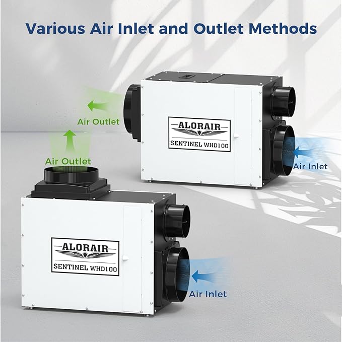 - DIY Multiple inlet and outlet: Our upgraded whole house dehumidifier can be adjusted inlet and outlet, 2 methods can be selected: forward air / rear air; forward air / up air, according to their own needs to rotate in a variety of directions, through the dismantling and installation of to meet the needs of all kinds of scenarios, balanced humidity, to protect the health and help prevent various problems caused by excessive humidity