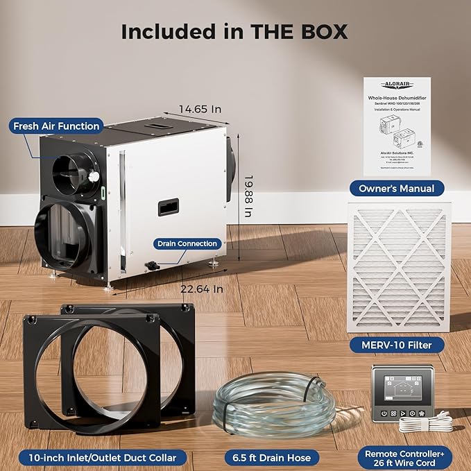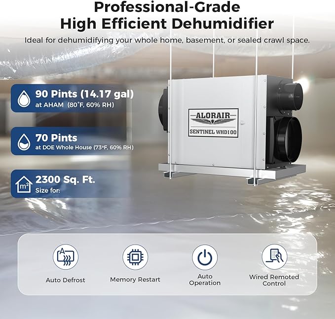 ALORAIR Whole House Dehumidifier, 90 PPD Commercial Grade Whole Home Dehumidifiers for Garages, Water Damage Restoration, 2300 Sq.Ft dehumidifiers for Crawl Space