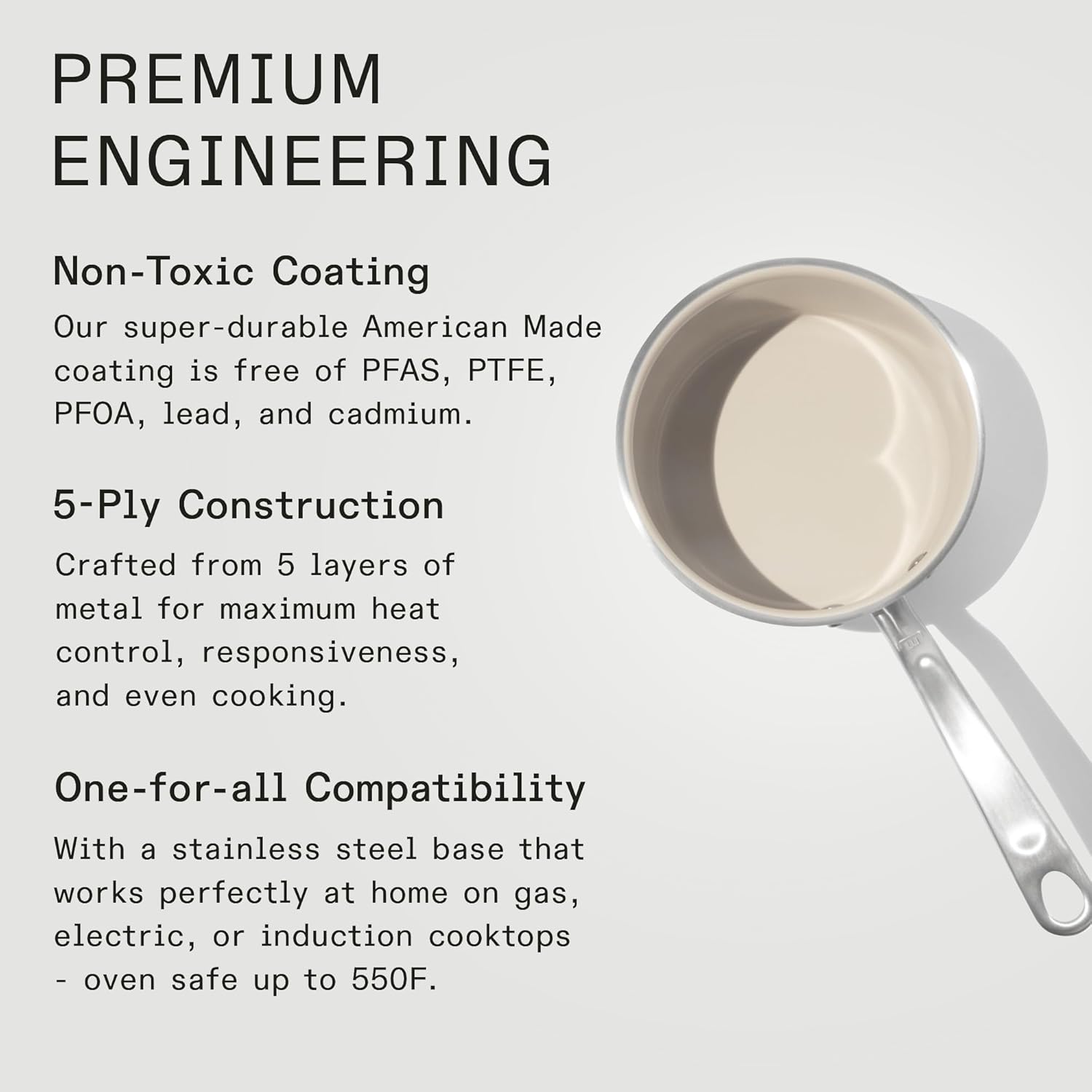 - Oven Safe - Safe for oven use up to 550F