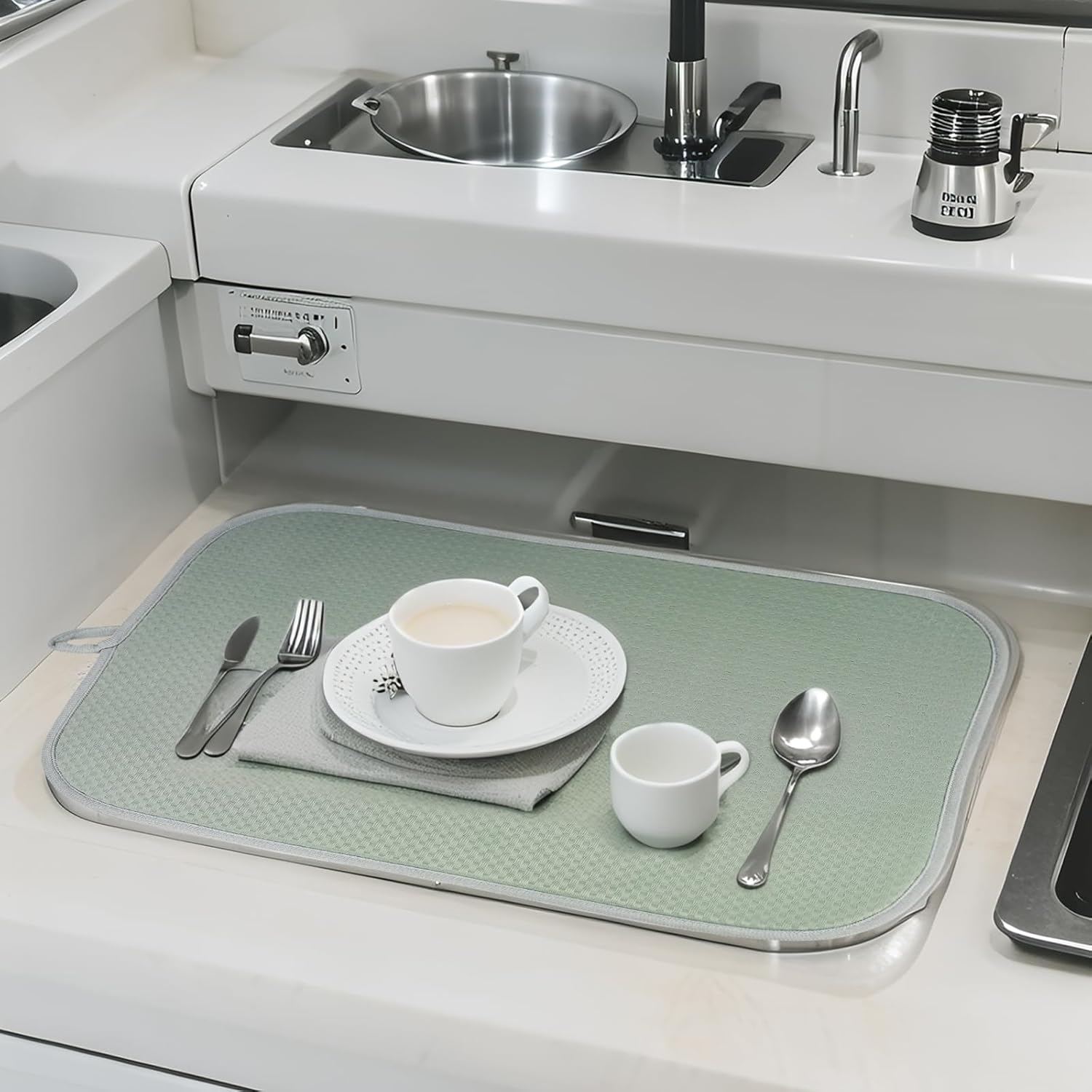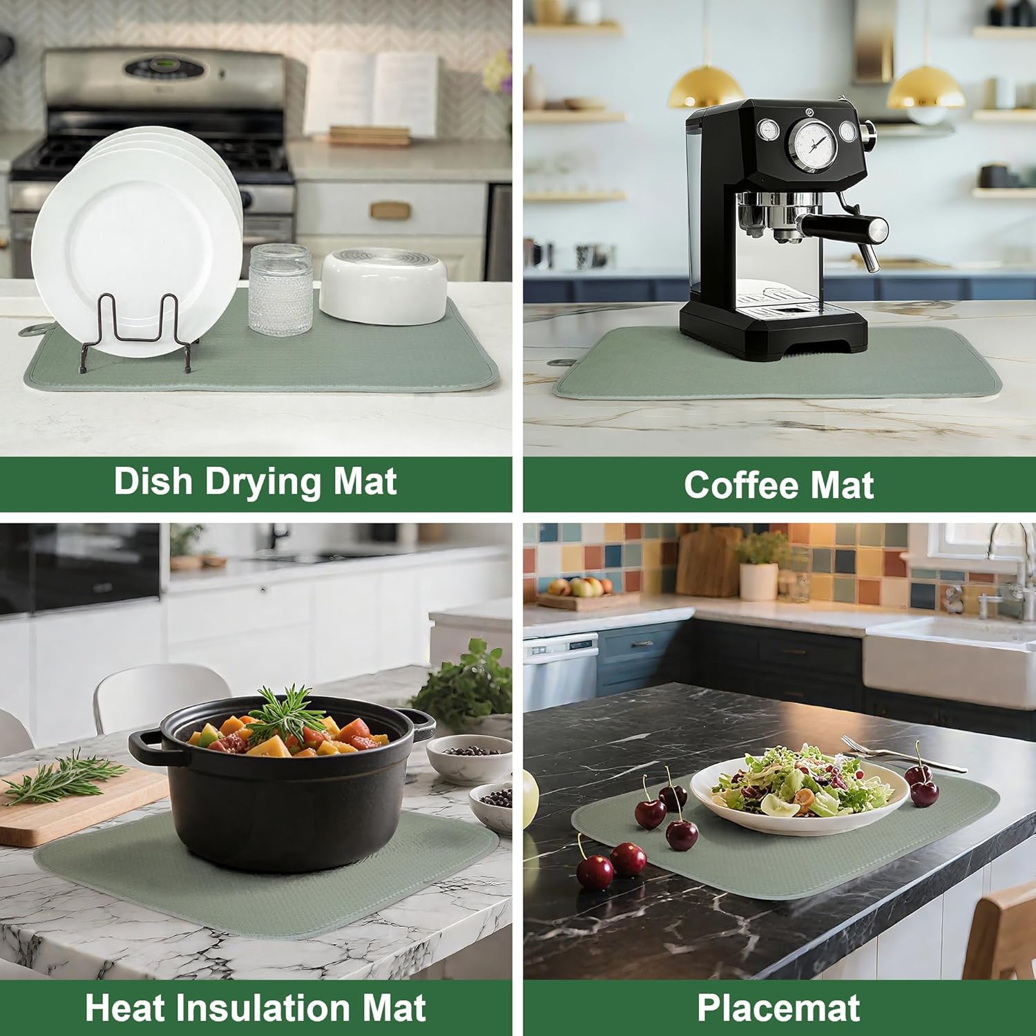 Sage Green Dish Dryer Mat, Dish Drying Mats For Kitchen Counter, Large Dish Drying Pad for Kitchen Counter, Microfiber Dish Drying Mat, for Sinks, Drainer Mats, 20 x 15 inches (Green)