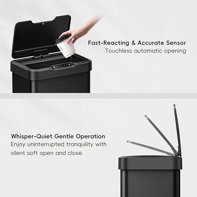 - Premium Motion Sensor Technology - Experience the smoothest, most seamless lid opening and closing technology with this EKO hands-free automatic trash can.