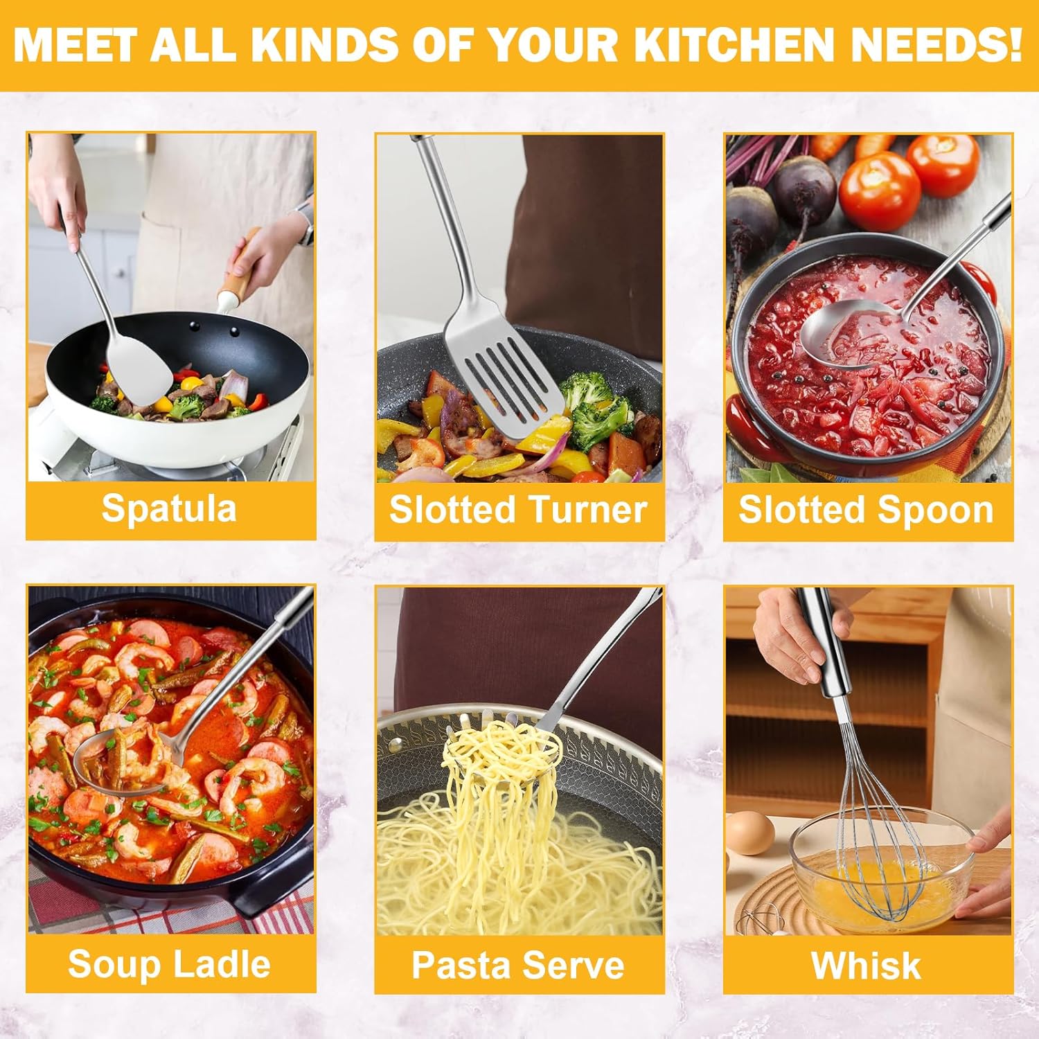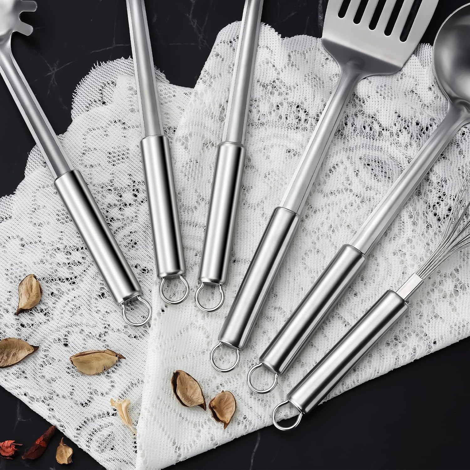 - Essential for Everyday Cooking: Whether you're whipping up a gourmet meal or a simple family dinner, the stainless steel cooking utensils set is a must-have toolset that enhances your cooking experience and ensures efficiency