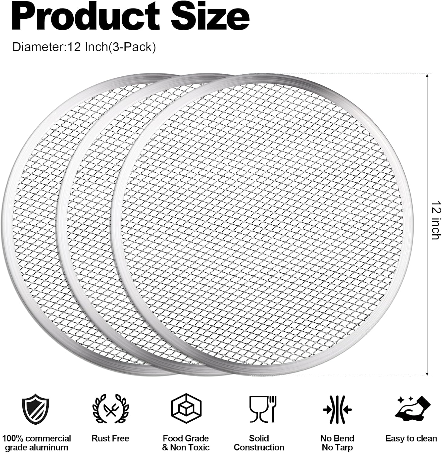 3 Pcs Pizza Screen, 12 Inch Pizza Pan for Oven, Nonstick Pizza Tray for Oven, Dishwasher Safe & Microwave Safe (12 inch)