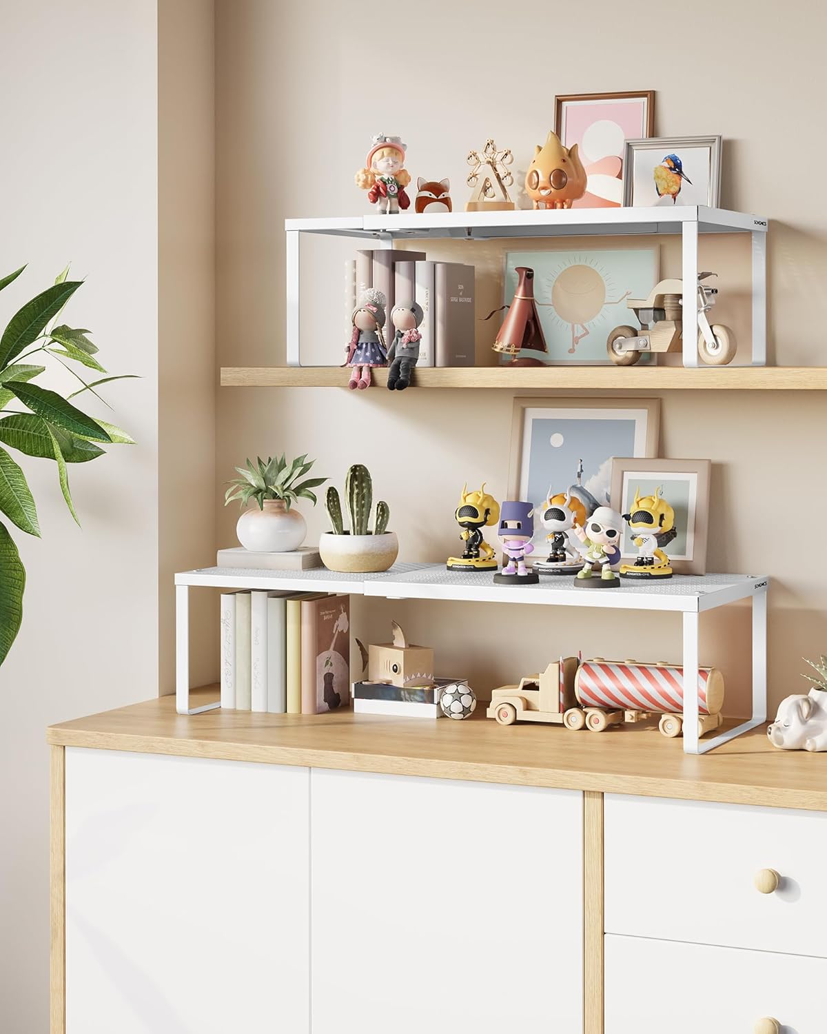 - 【VERSATILE】Place these cupboard shelves in kitchen cabinets or on countertops to store kitchen utensils, in the study to house office utensils and decorations, or in the entryway to keep your shoes off the floor